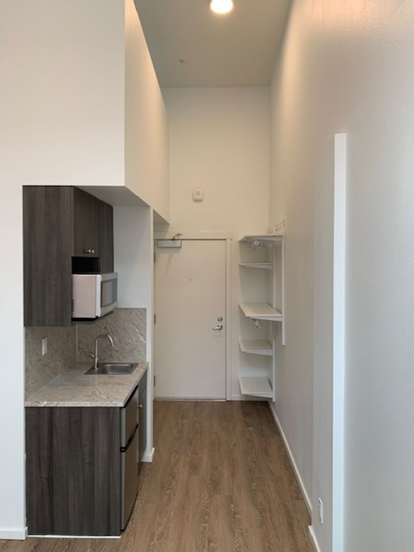 Imagine living in a top-floor loft-style apartment that offers endless possibilities! Apartment 502 is perfectly positioned near the elevator, common kitchen, and laundry machines for ultimate convenience. But the real showstopper? The upstairs living space accessed by ladder above your kitchenette and bathroom – a private retreat perfect for a bedroom, home office, or creative studio. With its separated living space, this loft offers flexibility and endless freedom for your interior-design desires!!