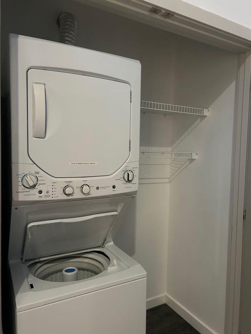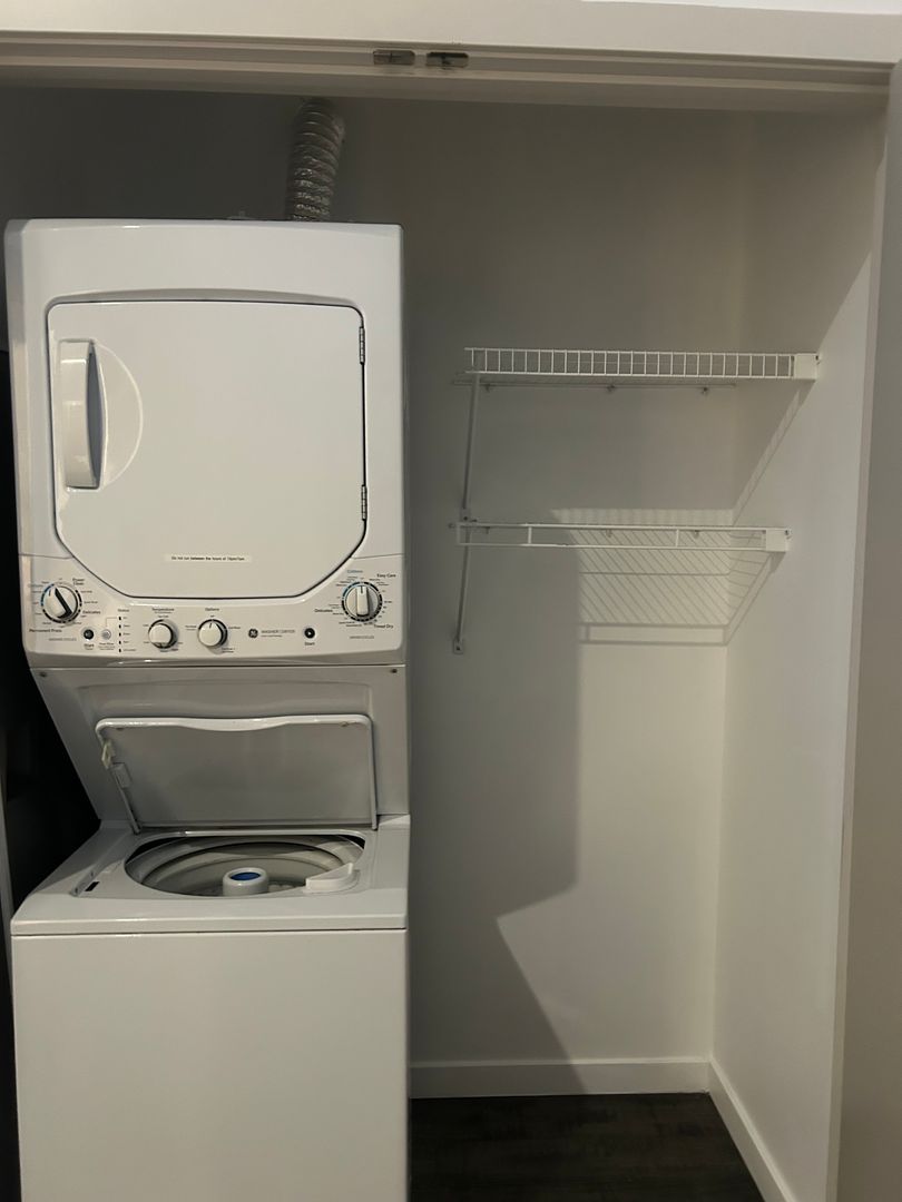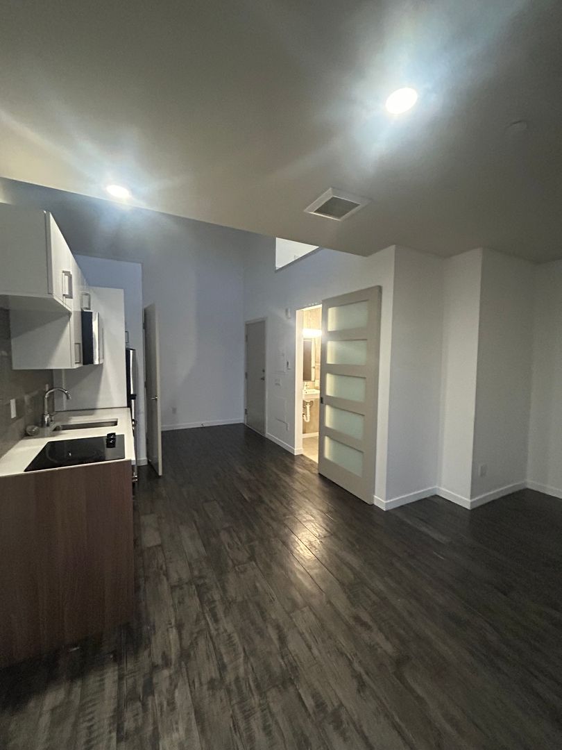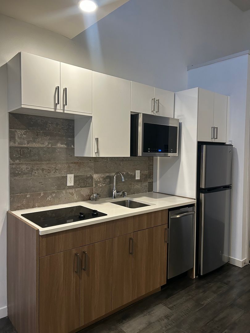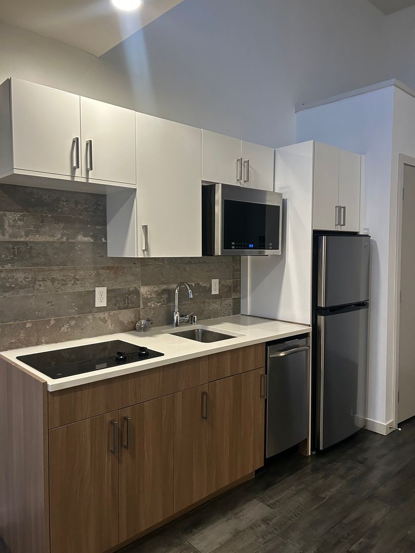 Your new home includes heating, plank flooring, large windows/high ceilings, a Murphy bed, and in-unit laundry! This studio boasts a modern kitchenette for cooking with ease.