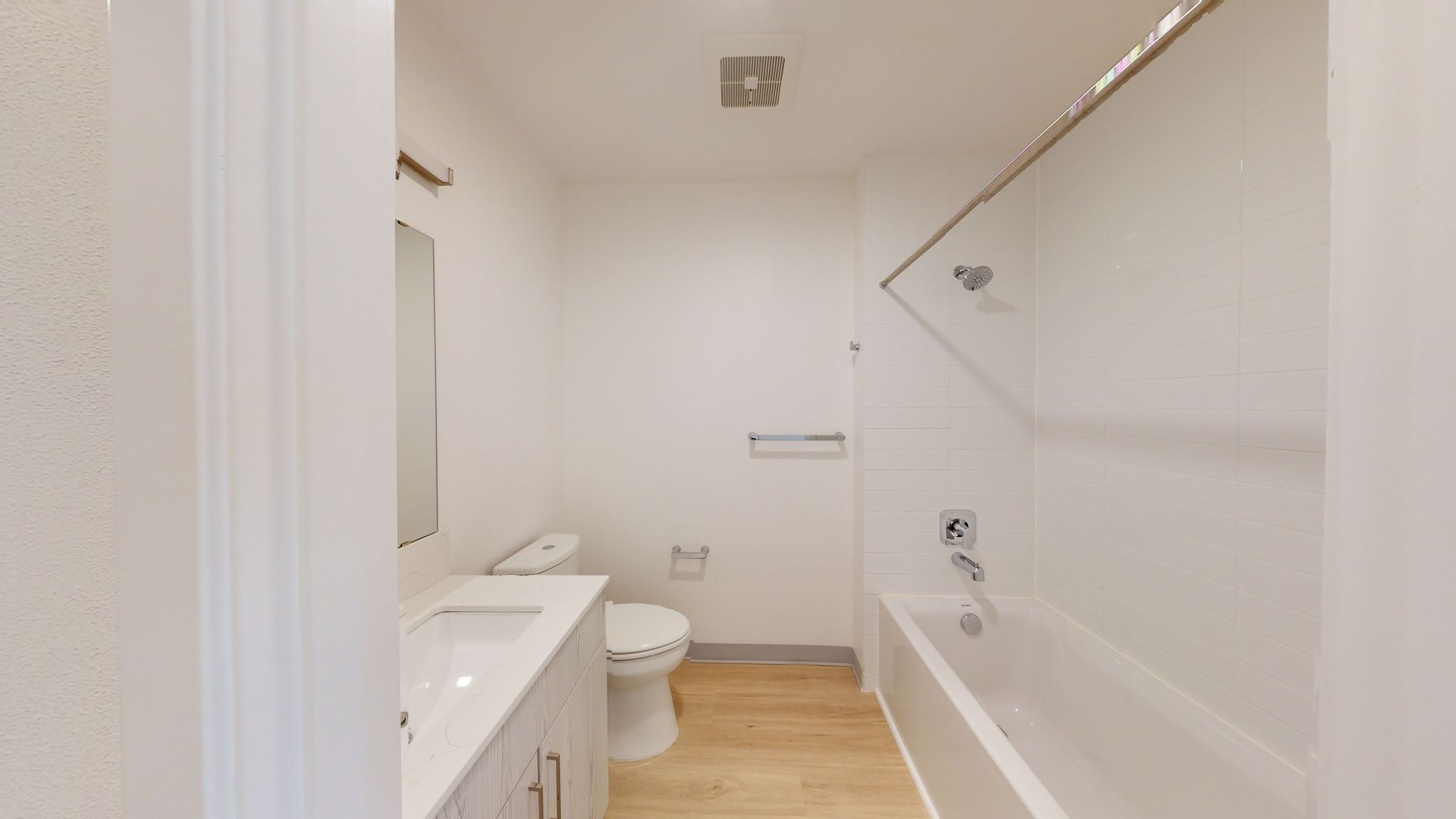 The kitchen is equipped with modern appliances, perfect for those who love to cook and entertain. The luxury vinyl wood-grain flooring adds a touch of elegance and warmth to the space.