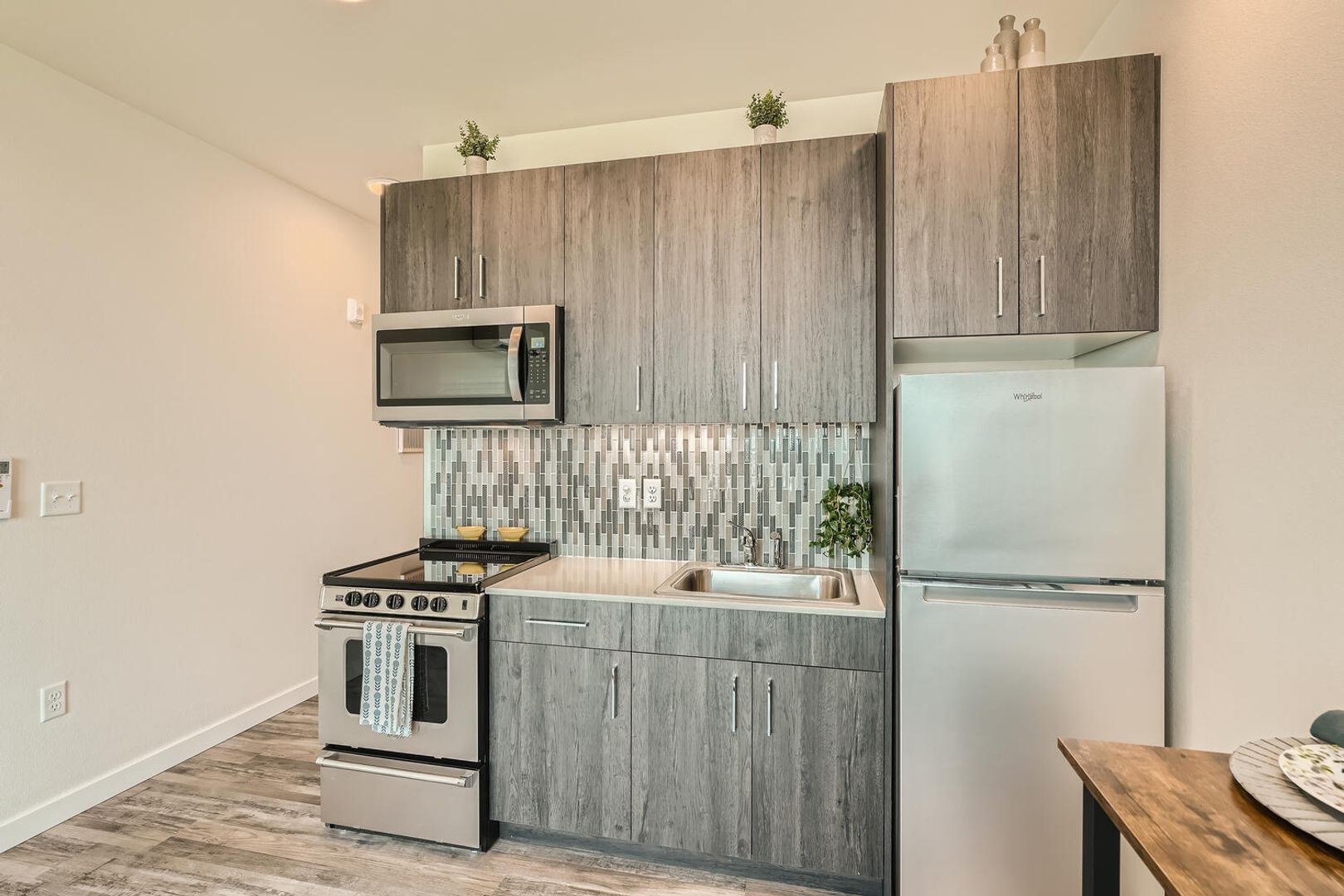 Enjoy the best of both worlds in this thoughtfully designed open-concept studio. Cleverly placed dividing walls create distinct living spaces, giving you the privacy and comfort of a one-bedroom while maintaining the airy, modern feel of a studio. Plus, with stunning Mount Rainier views, this is a space you'll love to call home.