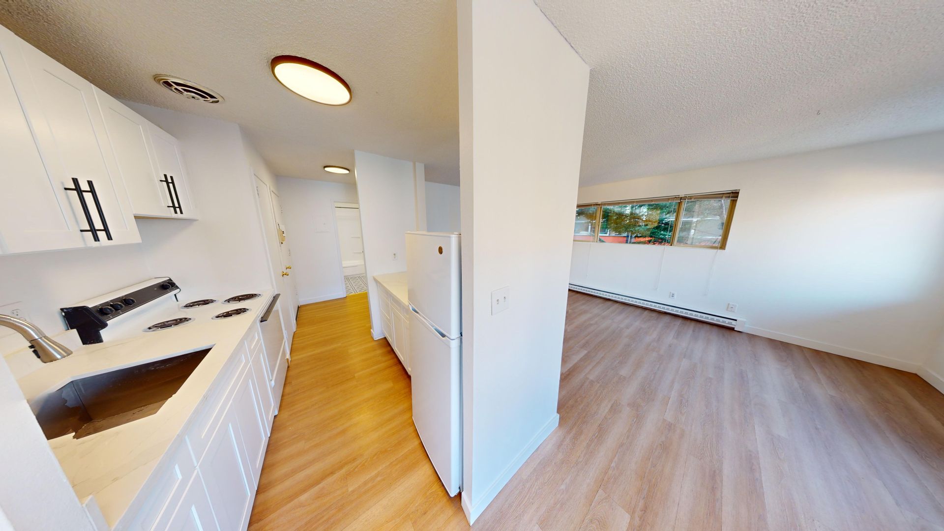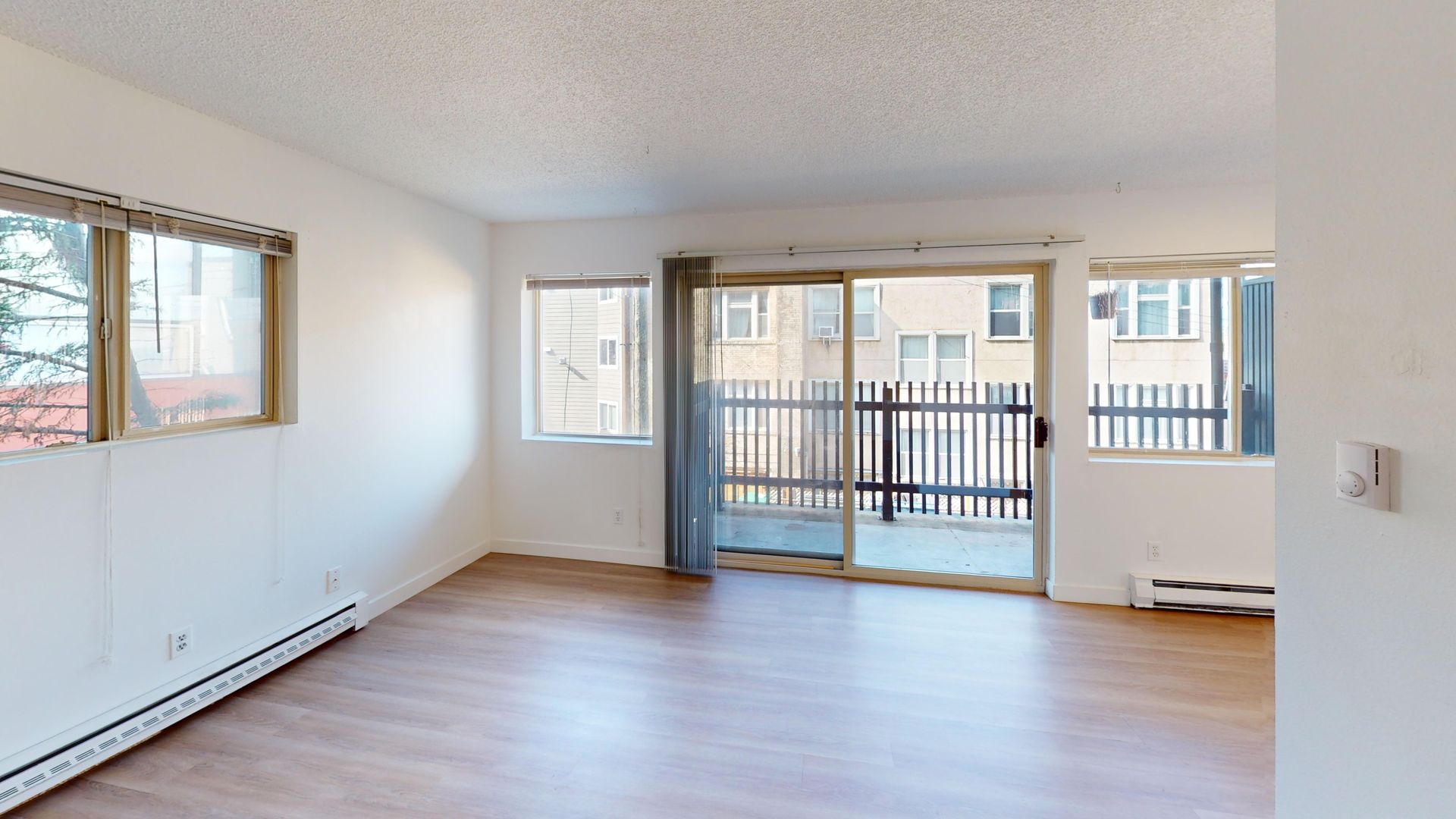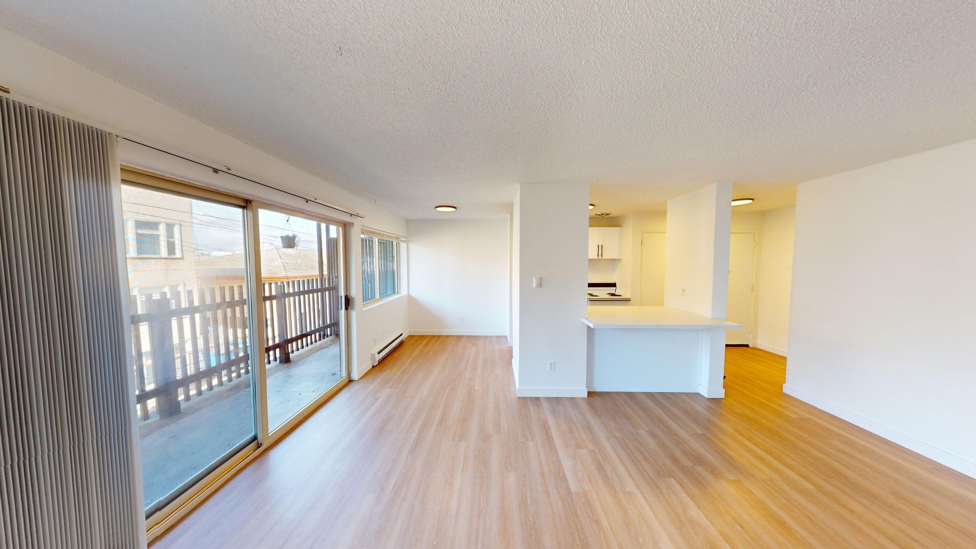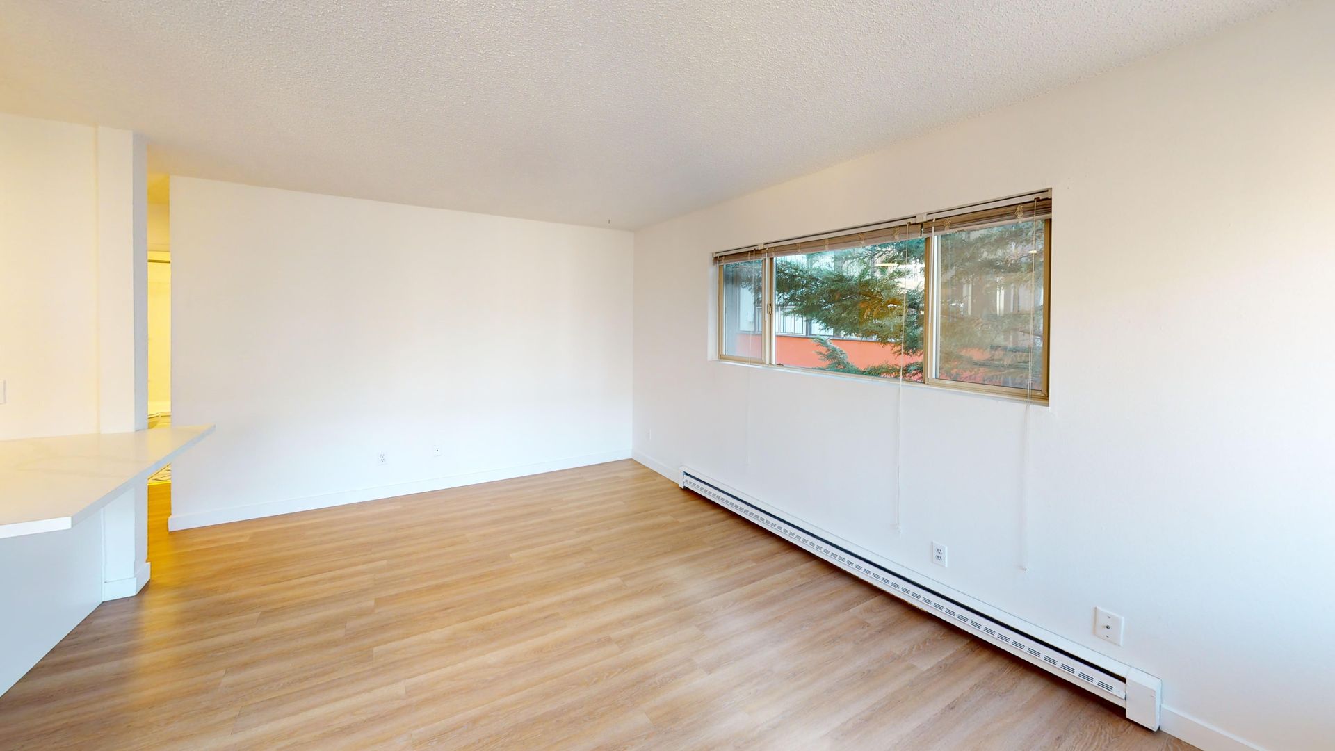 Montbel has a ground-floor one-bedroom apartment available, with a large fenced patio, ample living space, new wood floors, a dining area, and lots of closet space.