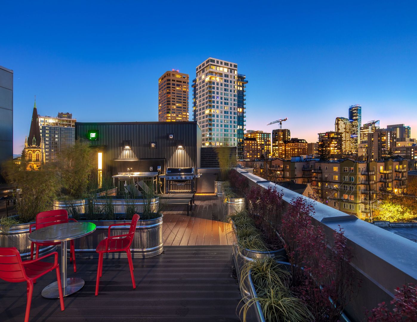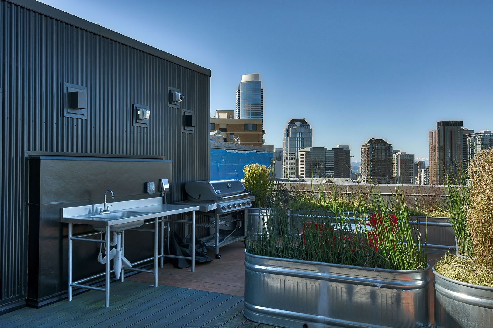 -Rooftop deck with city and mountain views, BBQ