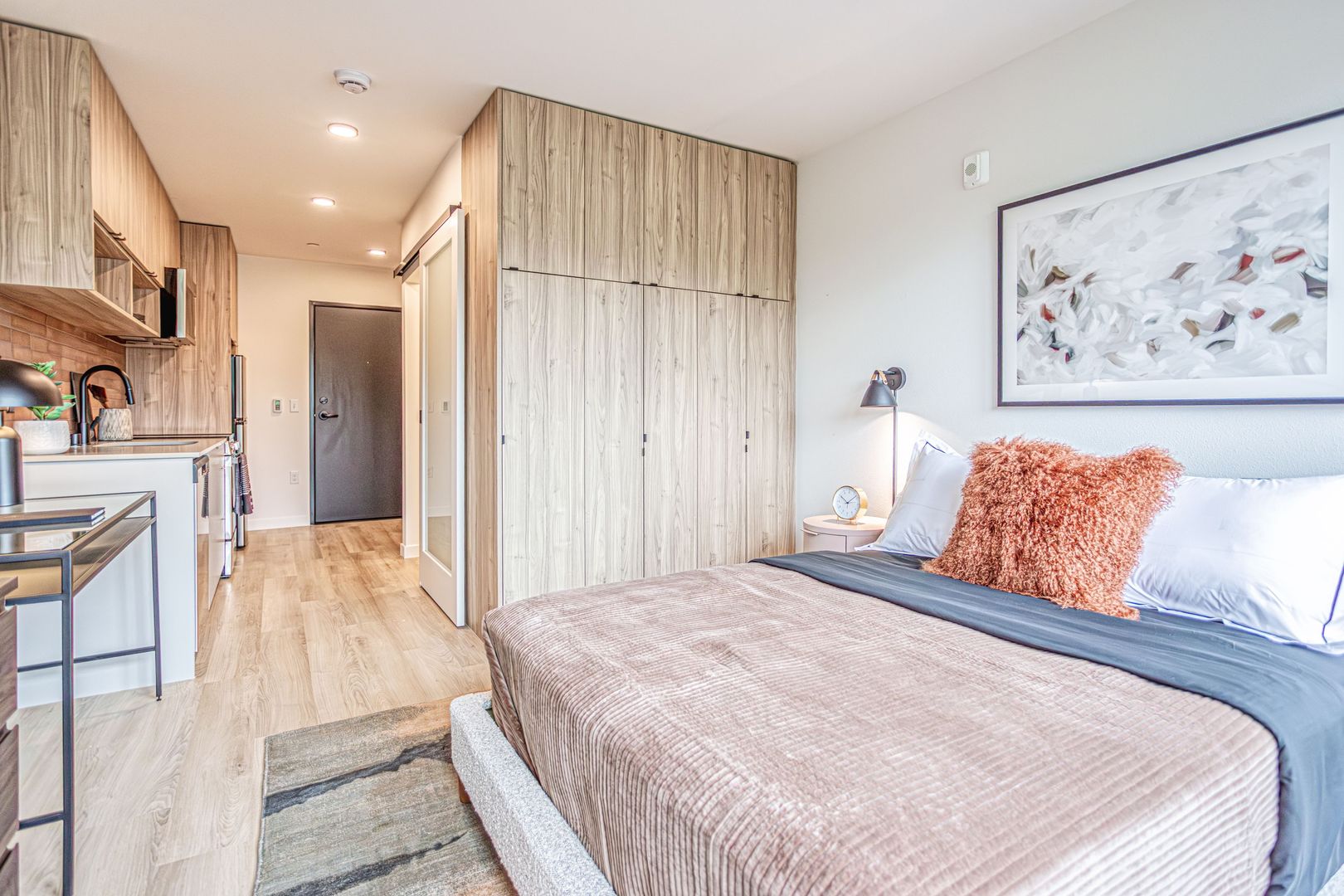 Reed offers thoughtfully designed studios in the heart of Fremont with sleek finishes, full kitchens, in-unit laundry, and access to rooftop and indoor lounges with views of Lake Union and downtown.