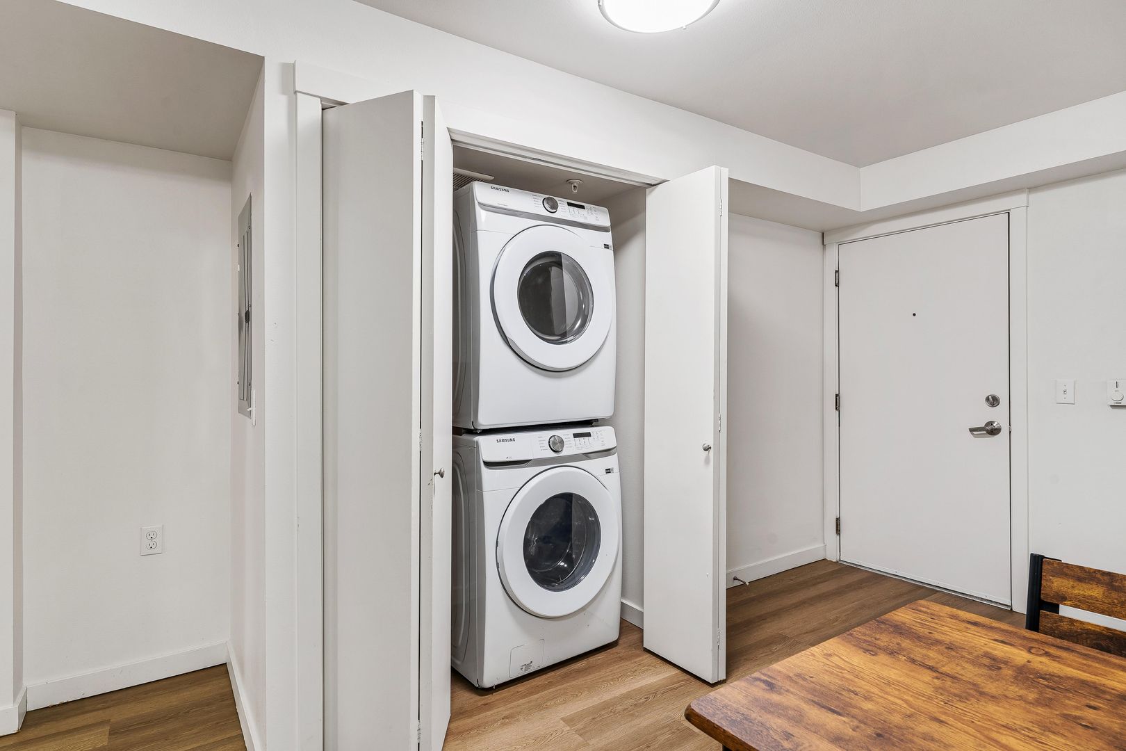 - In-suite smart washer/dryer stackable you have the convenience of carrying your laundry a few steps from your room.