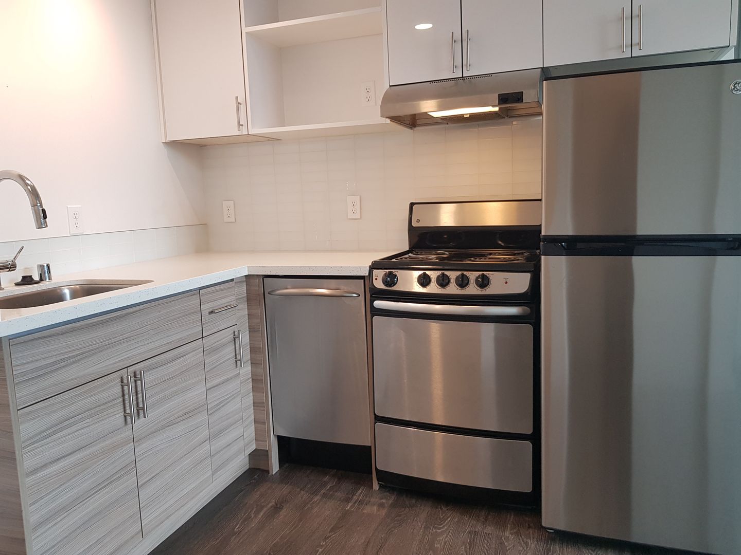 Each apartment includes a full size kitchen and amazing modern finishes. Find laundry available on every floor. The building offers a rooftop deck with views of the Cascade Mountains, Lake Washington, and Mount Rainier, a ping pong table, a fireplace, and a BBQ.