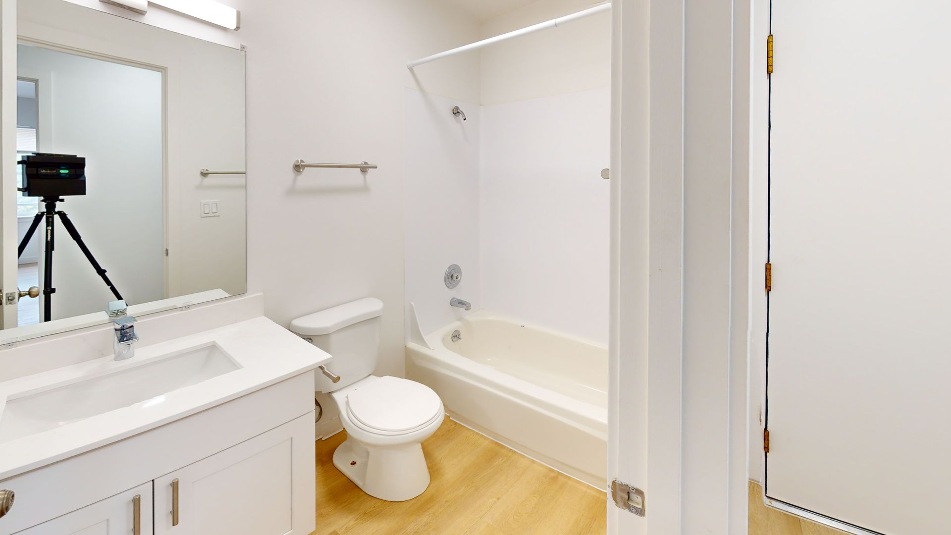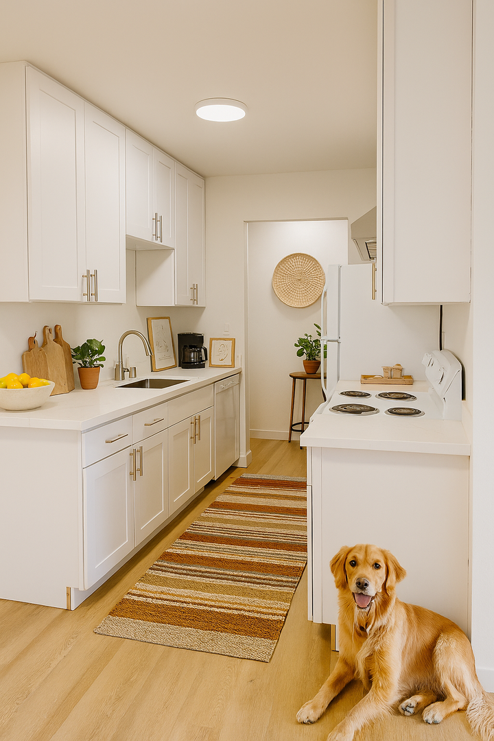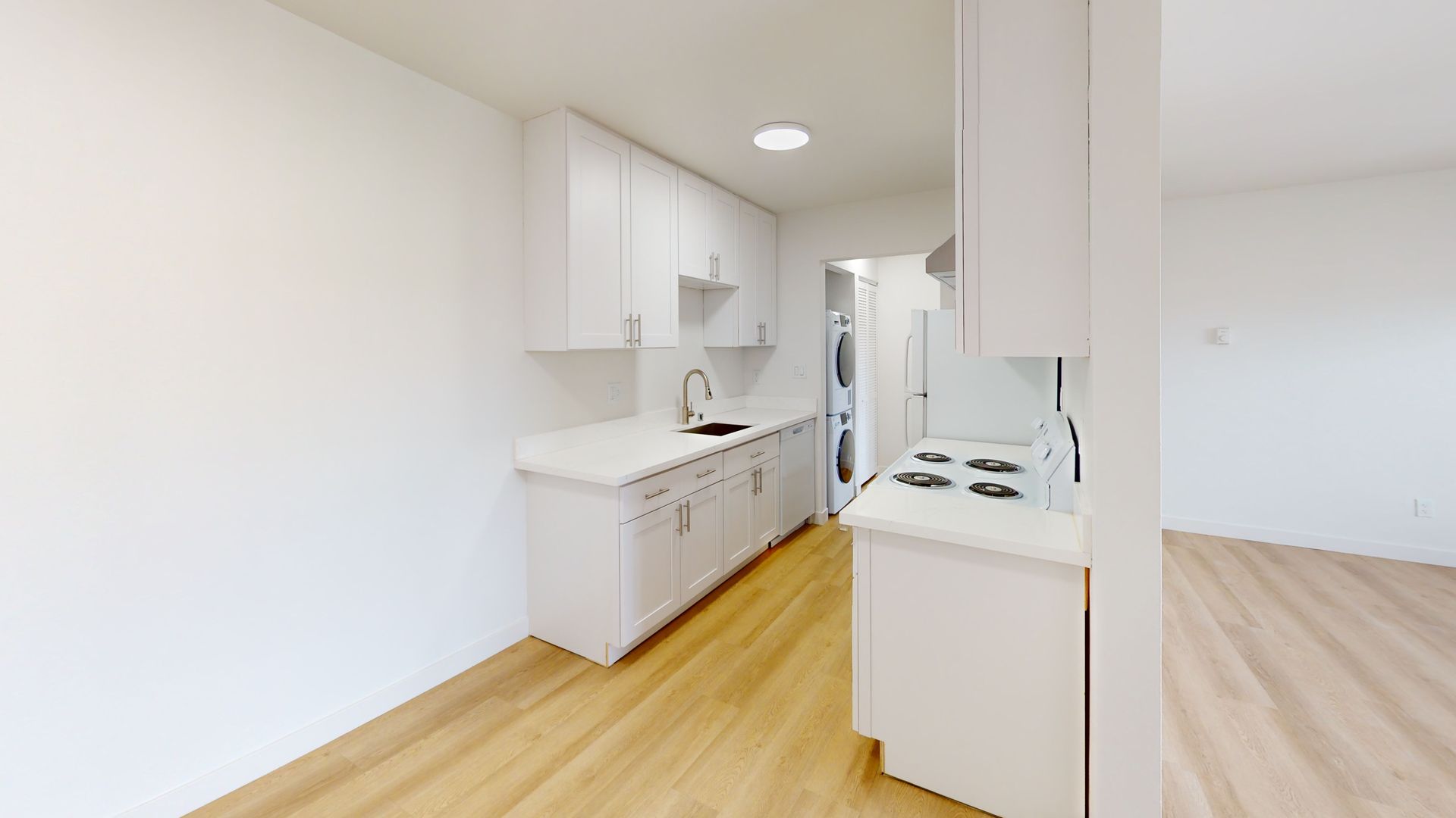 Remember, this 1-bedroom is newly renovated and ready to pull its weight. We’re talking warm oak floors that feel solid underfoot, white quartz counters that clean up easy, stainless or white appliances (pick your team), and an in-unit washer/dryer so you’re never elbow-deep in quarters at the laundromat again.