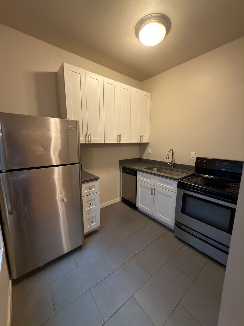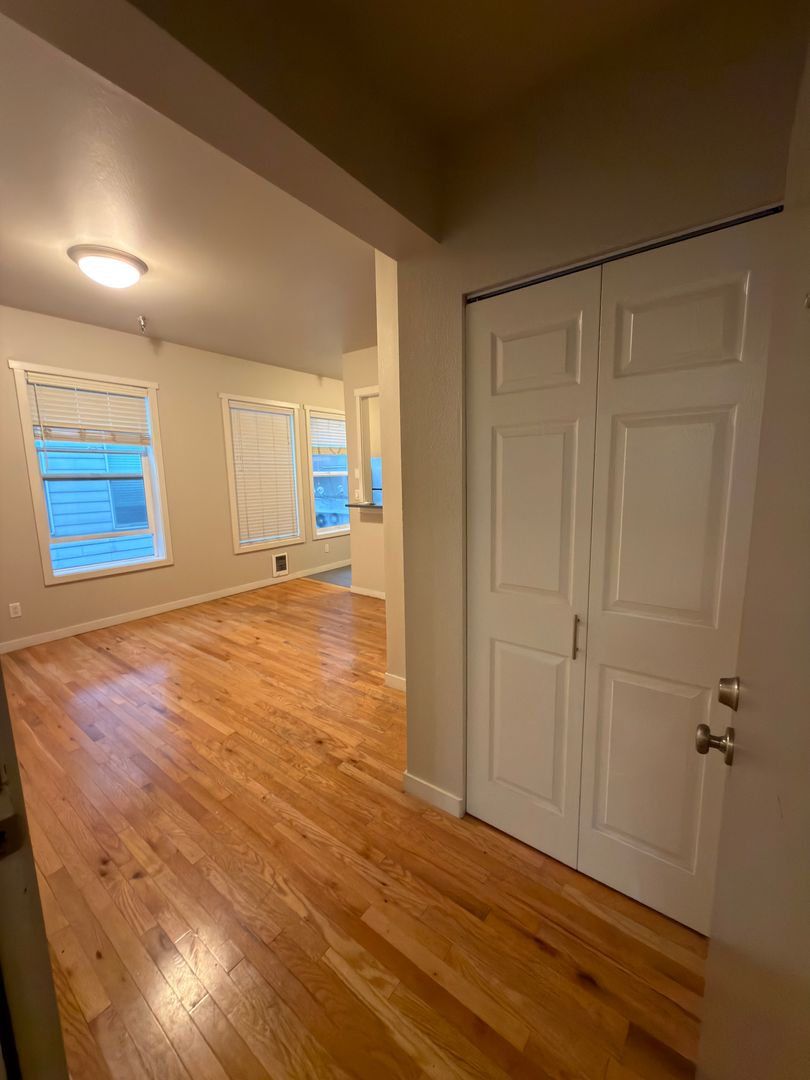 The open living area features beautiful hardwood floors and large windows, bathing your space in natural light while offering a flexible layout for entertaining, work, or unwinding. Cook with ease in a modern kitchen equipped with sleek stainless steel appliances and plenty of cabinet storage.