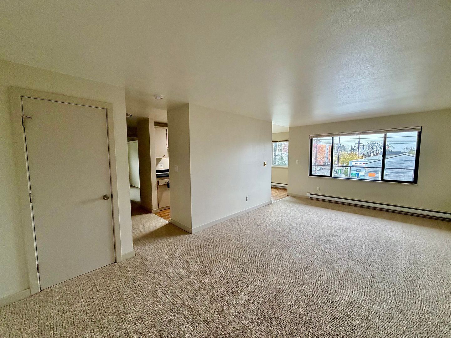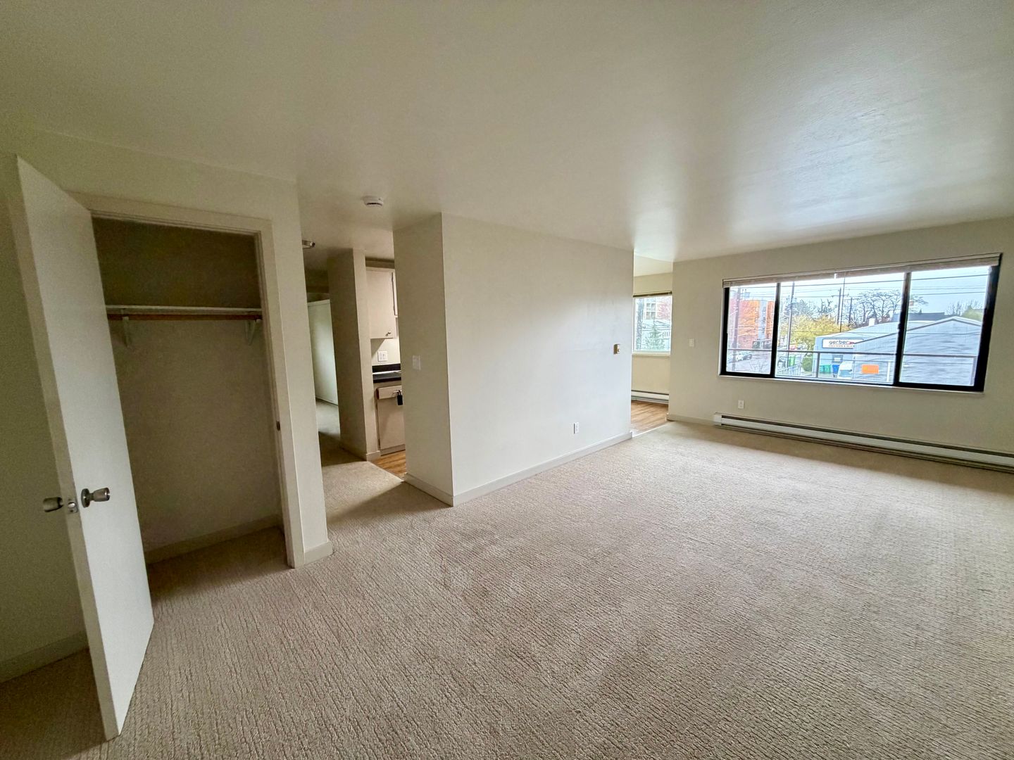 *Please note: This unit is under renovation, and the current images show the exact floor plan of the unit coming available, but are not of the exact unit. The images shown, have carpet throughout and this unit will have vinyl plank flooring. Paint color and finishes may be different. Washer and dryer will be in the living room closet, rather than in the hallway.