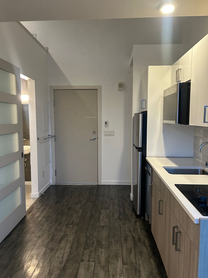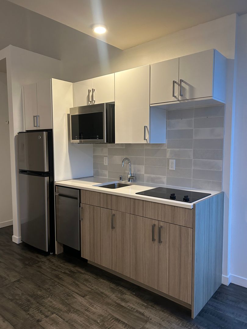 Your new home includes heating, plank flooring, large windows/high ceilings, a Murphy bed, and in-unit laundry! This studio boasts a modern kitchenette for cooking with ease.