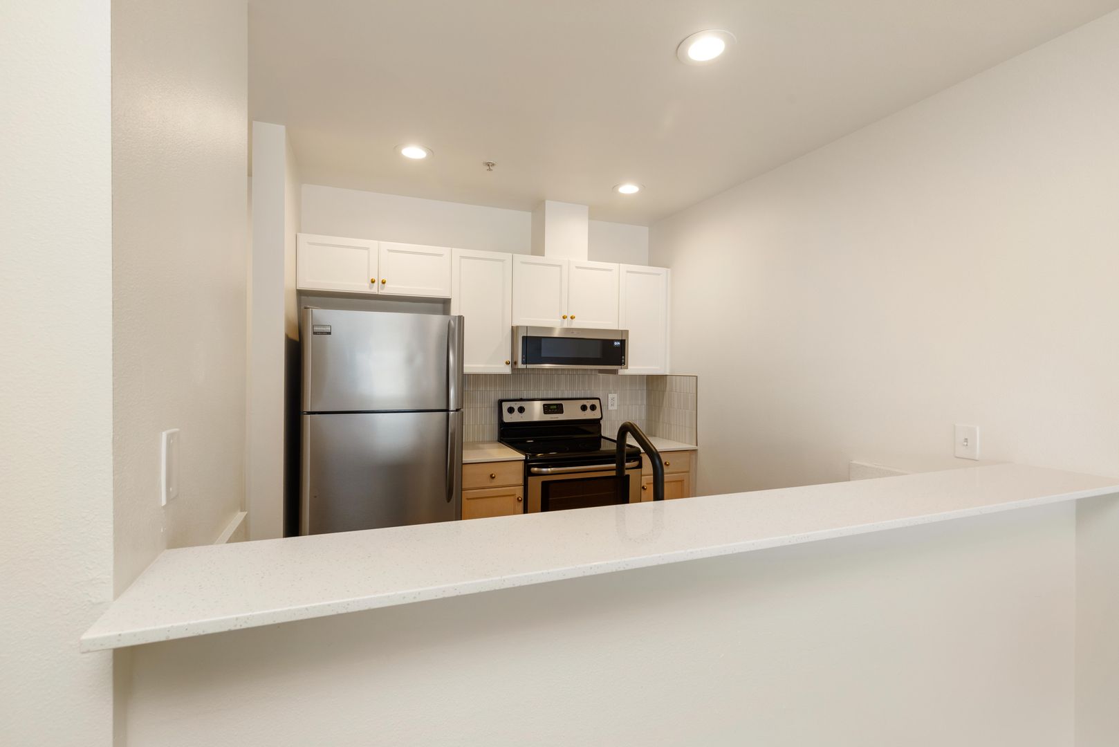 Inside, our thoughtfully designed one- and two-bedroom apartment homes are built to complement your lifestyle. Each residence features modern finishes including durable vinyl wood-plank flooring, in-home washer and dryers, and fully equipped kitchens. We’re also a pet-friendly community and look forward to welcoming your furry companions home.