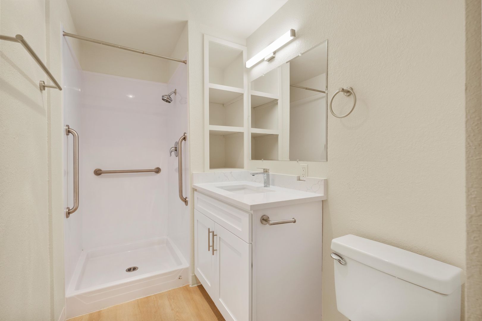 - Brand-new vinyl hardwood-style floors