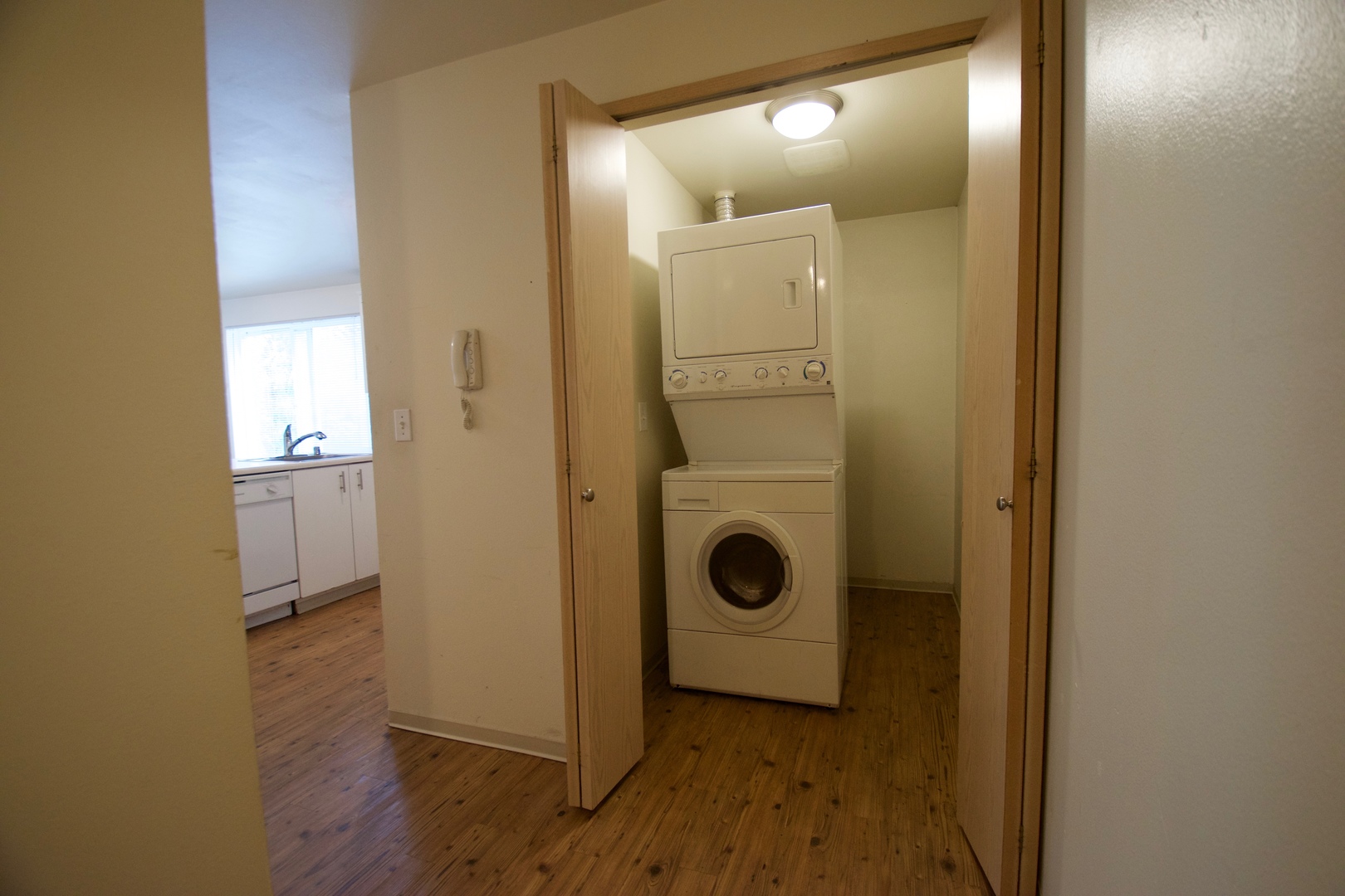 This 720 square foot one-bedroom home features in-unit laundry and a complete kitchen. The kitchen includes a breakfast bar, dishwasher, and garbage disposal!