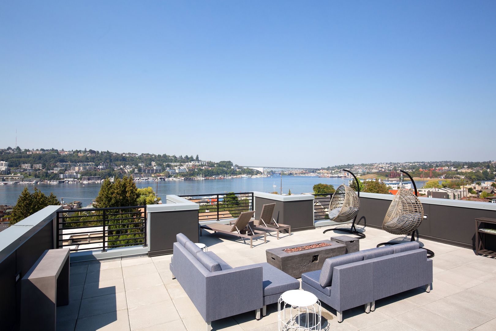-Gorgeous rooftop and grill with stunning views of the surrounding neighborhood and Lake Union views.