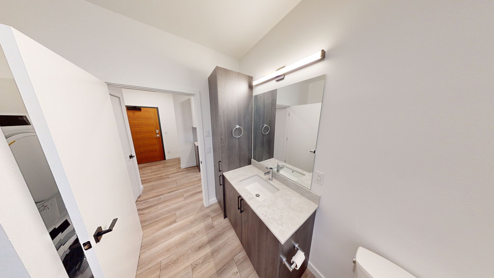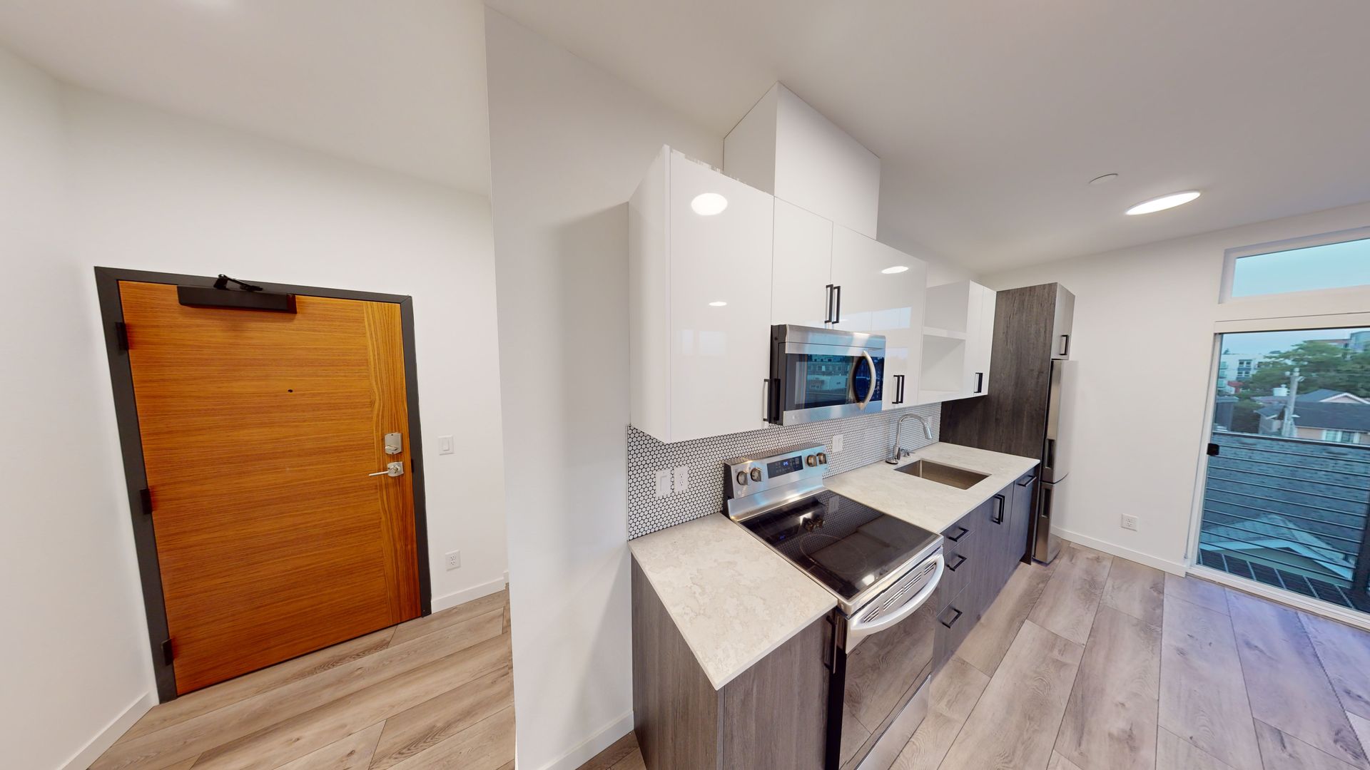 Enjoy spacious and open floor plans with expansive windows & private patios in select homes. The state-of-the-art kitchens are equipped with sleek stainless steel appliances, quartz countertops, and designer cabinetry. In-unit washers and dryers make laundry day a breeze.