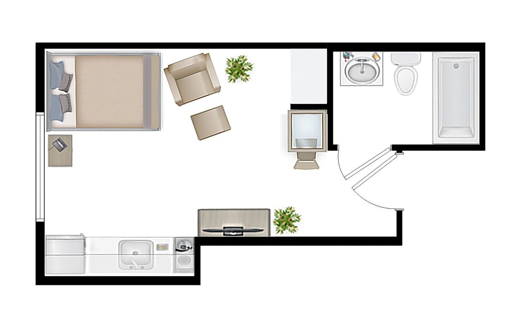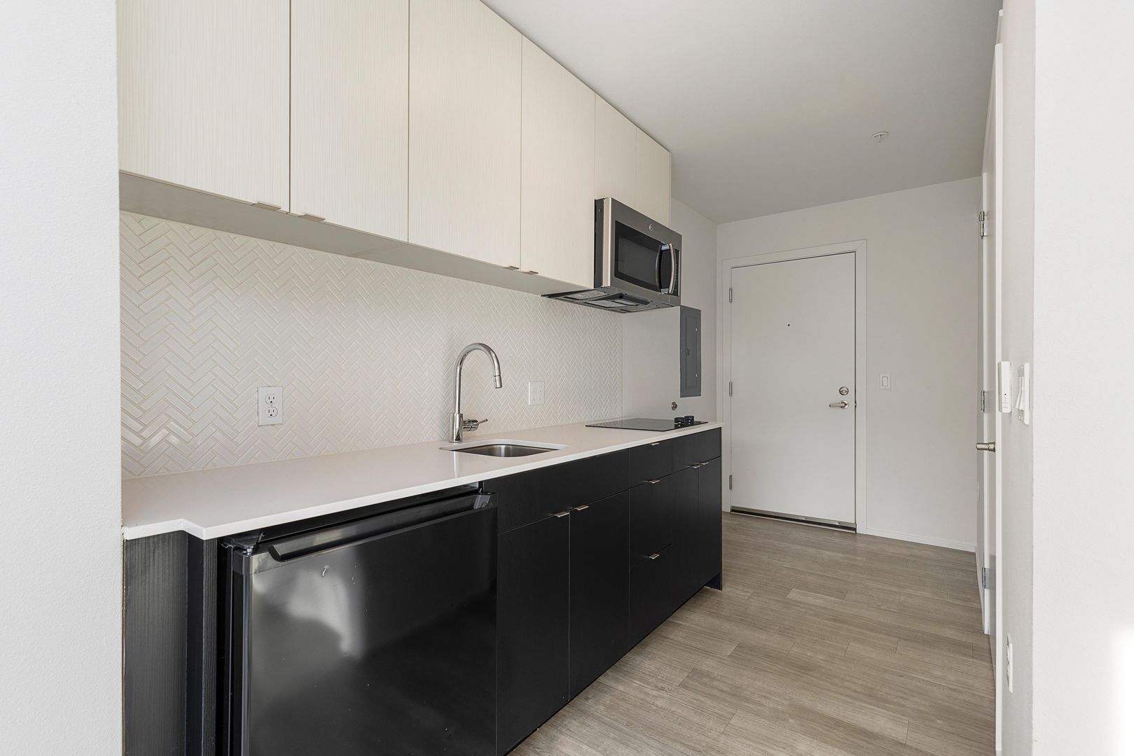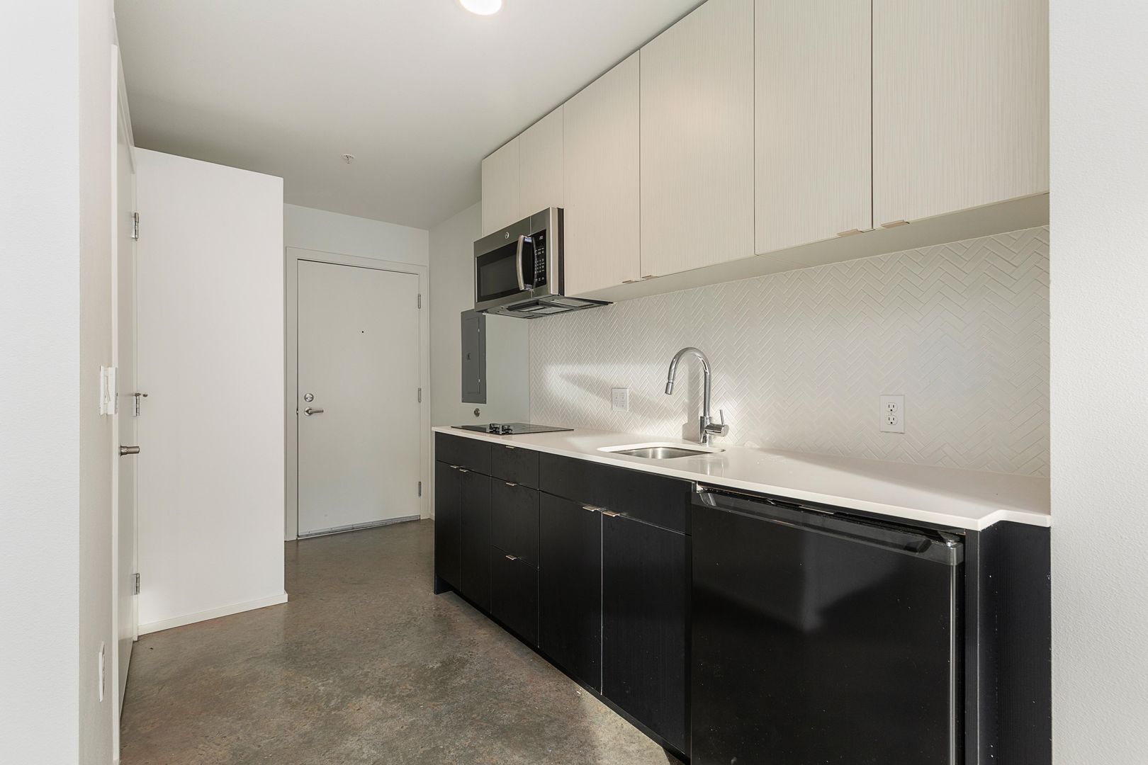 - Cooktop, microwave, sink, and fridge in every unit