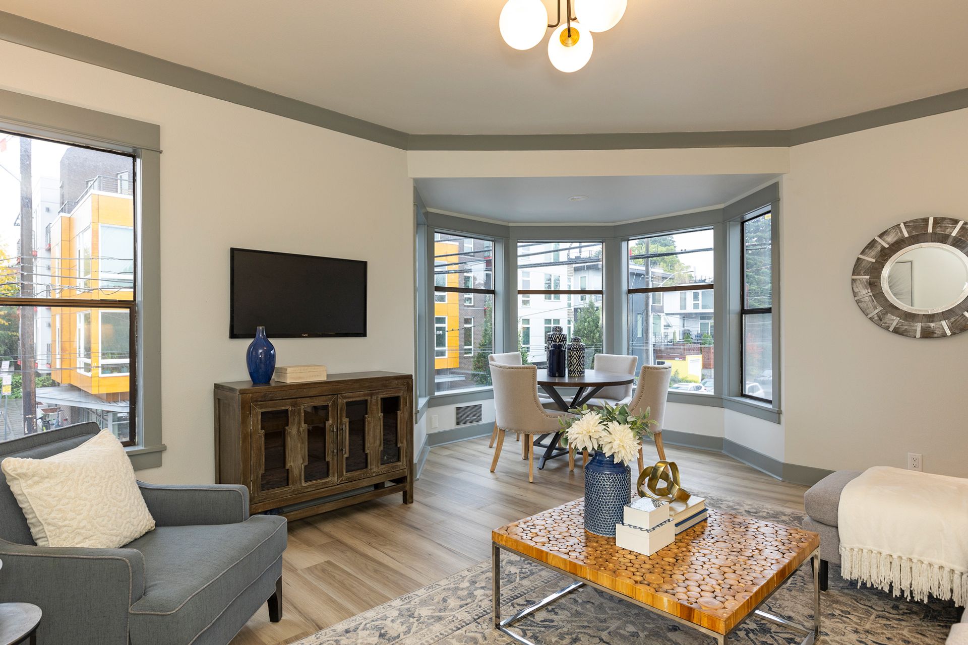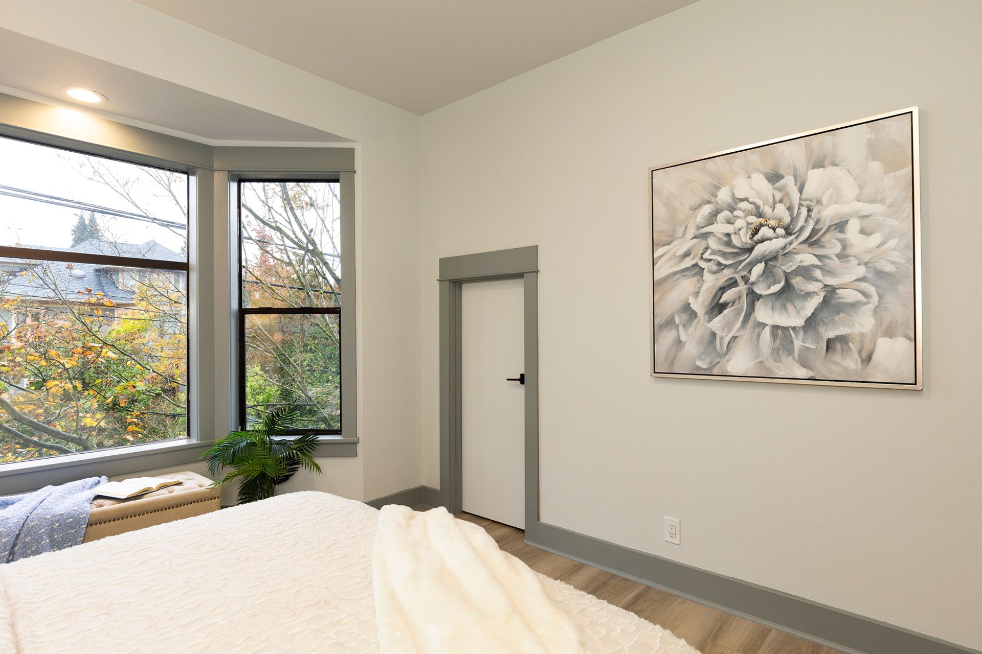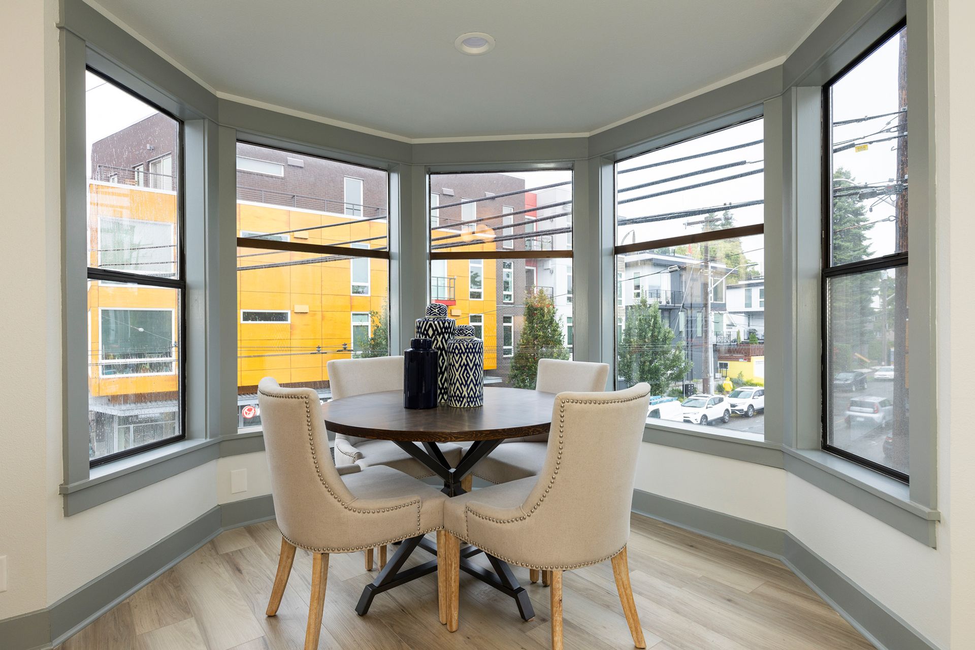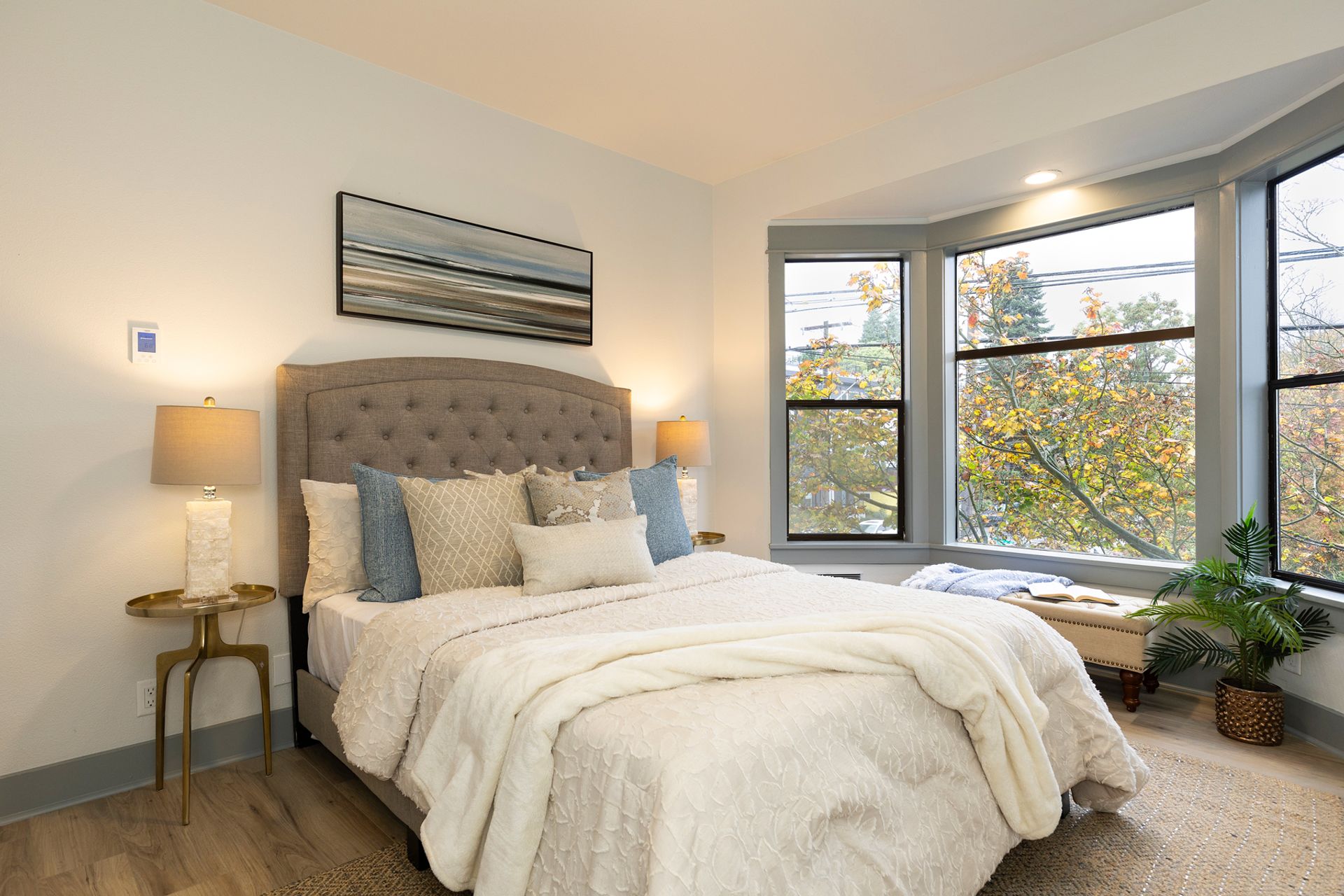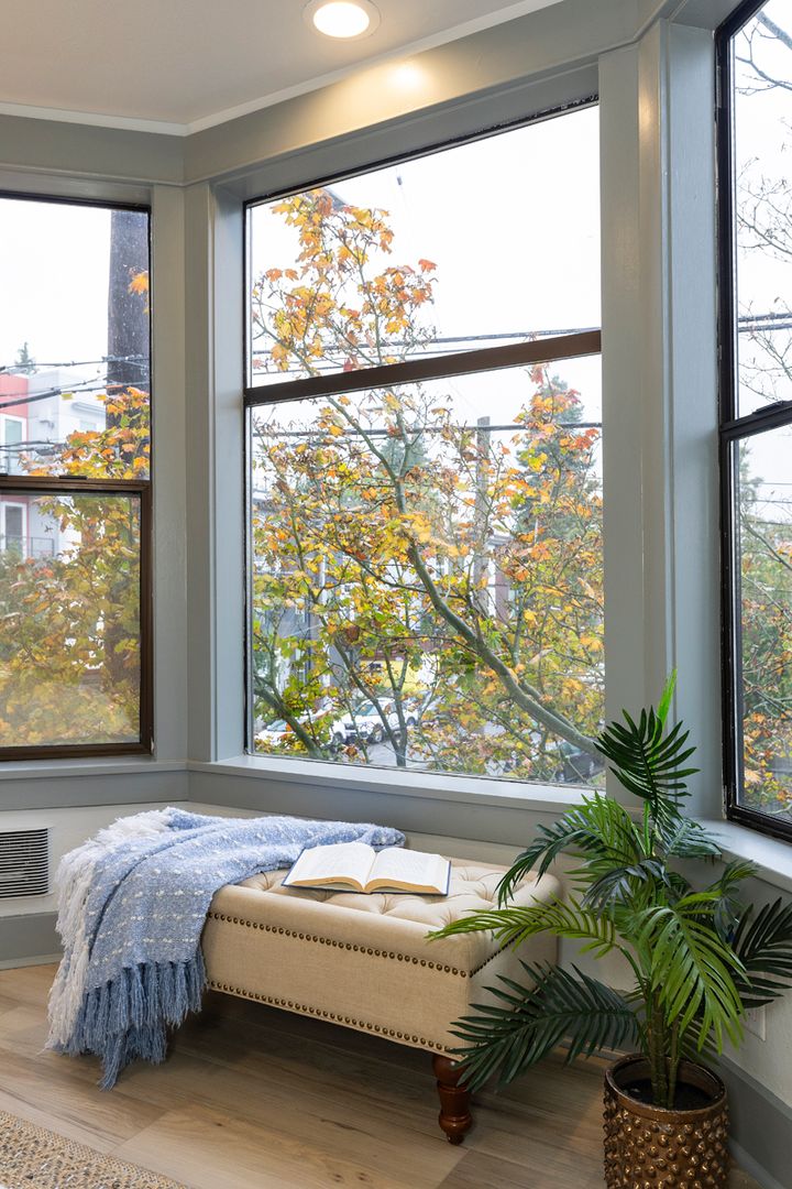 - Spacious bay windows with neighborhood views