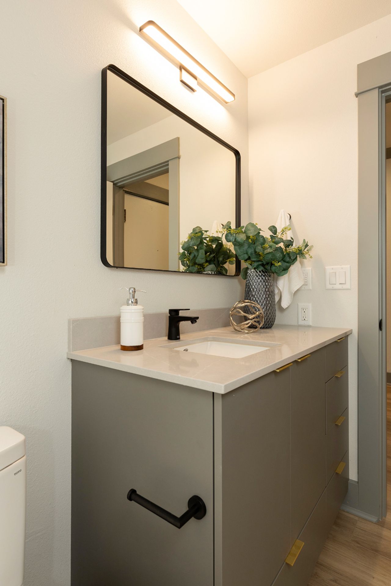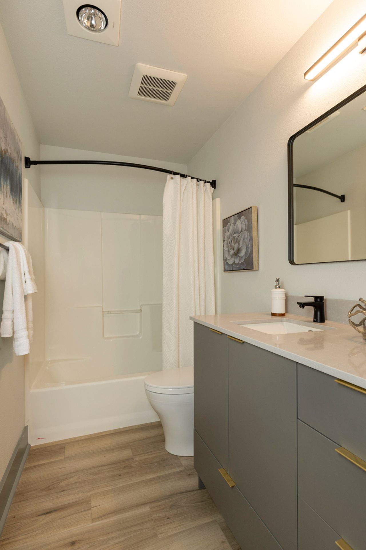 - Updated bathroom with sleek vanity & black fixtures