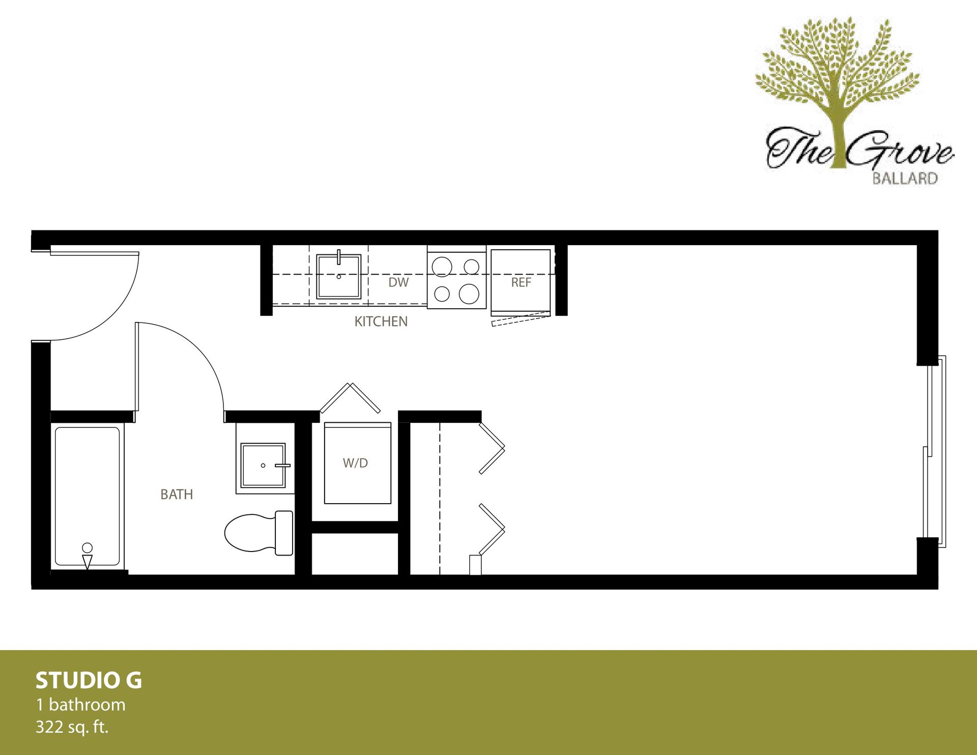 Introducing the Grove, a modern studio apartment located in the heart of the Ballard neighborhood of Seattle. This 2ND Floor unit is sure to impress and ready for you to call home!