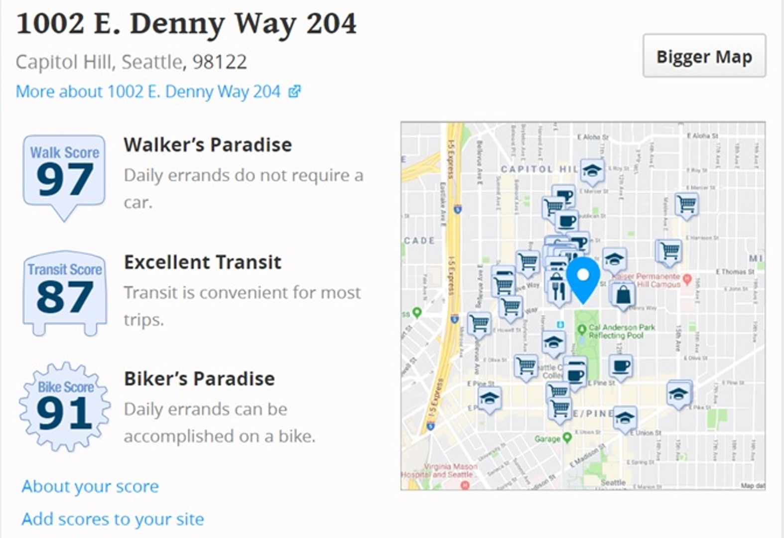 97 Walk Score, 87 Transit Score, 91 Bike Score