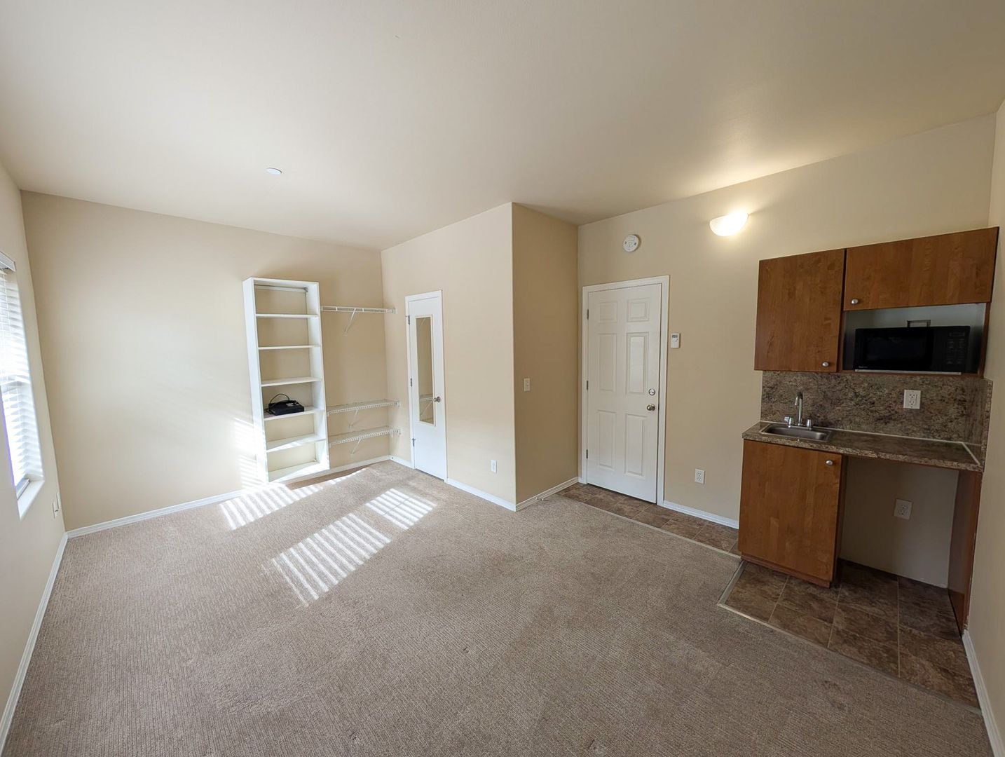 7A is one of our most unique floorplans, offering one of our largest spaces with a private balcony. Inside of your new home, you'll find a private kitchenette and bathroom, complete with a minifridge, microwave, sink, standing shower, and toilet. Just outside of your unit, make use of our common kitchen area (maintained regularly by on-site maintenance and a professional cleaning vendor). Not only that, 7A boasts a private balcony so you can take in the crisp, Redmond air. Don't wait, this unit is unlike anything other!