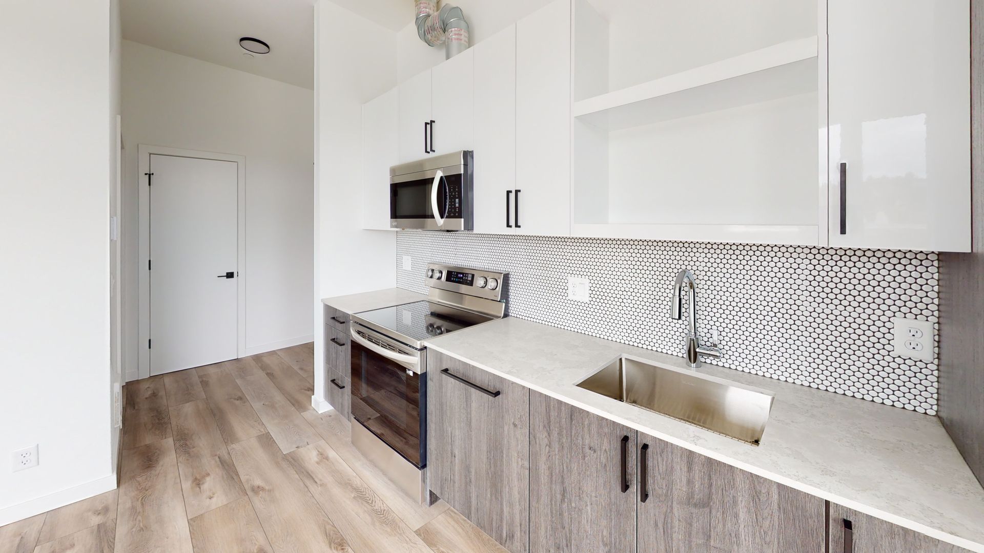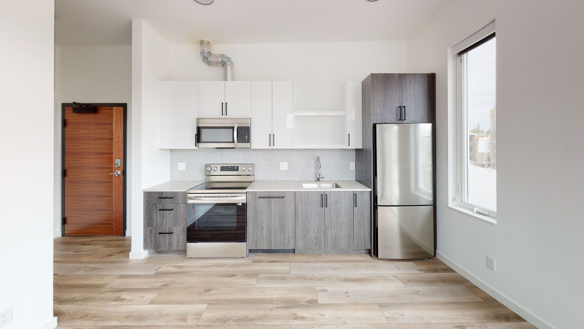 Discover studio and one-bedroom homes with sleek finishes, stainless steel appliances, quartz countertops, and in-unit laundry. Select homes feature private patios and expansive windows.
