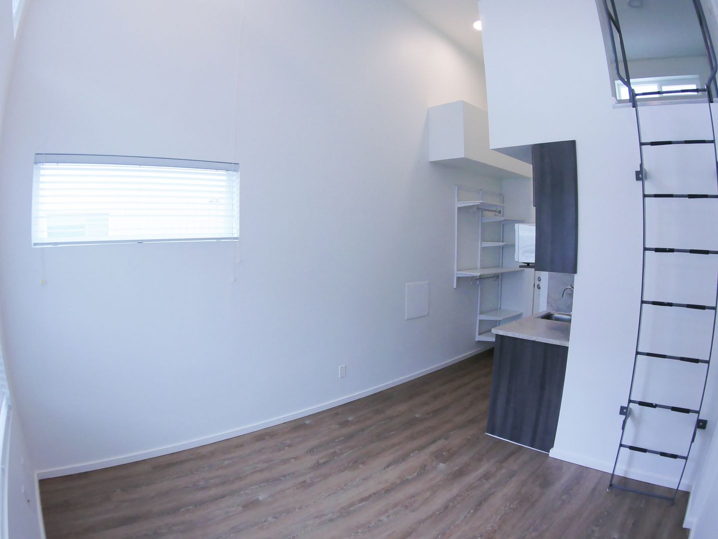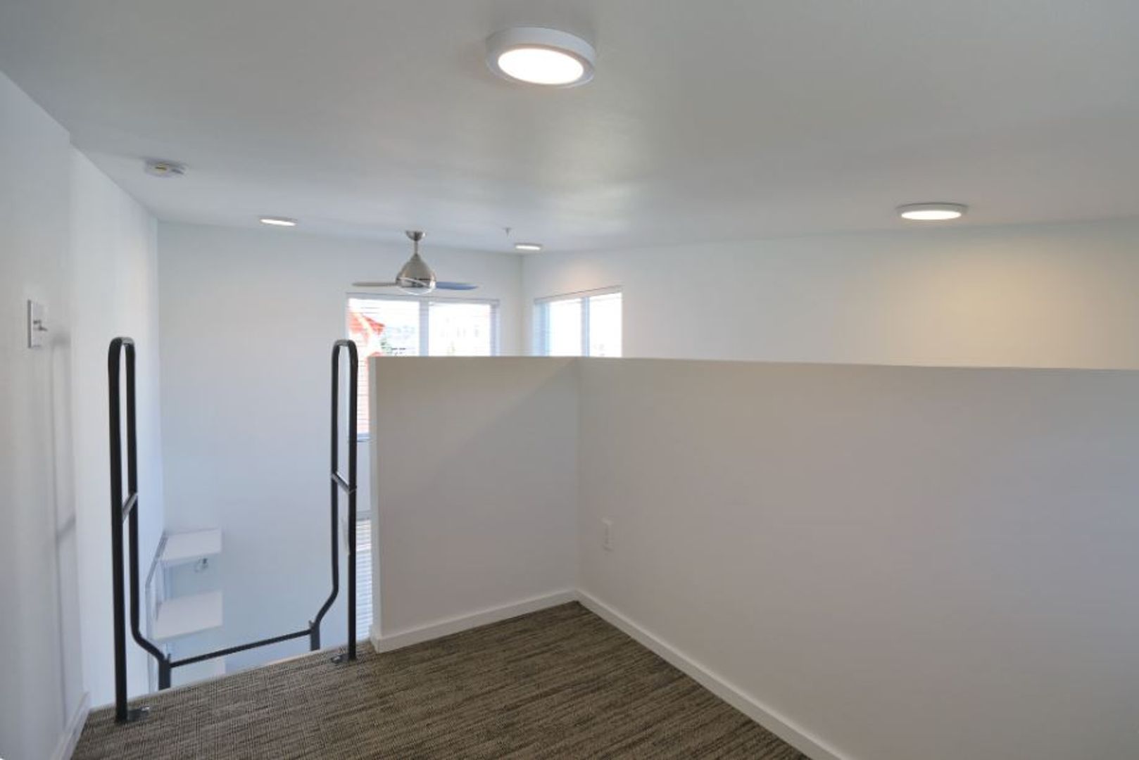 This top floor unit is a spacious loft with 2 separated areas, with the loft accessible by a built-in ladder. With giant windows that give tons of light, this west facing unit supplies a lovely courtyard view.