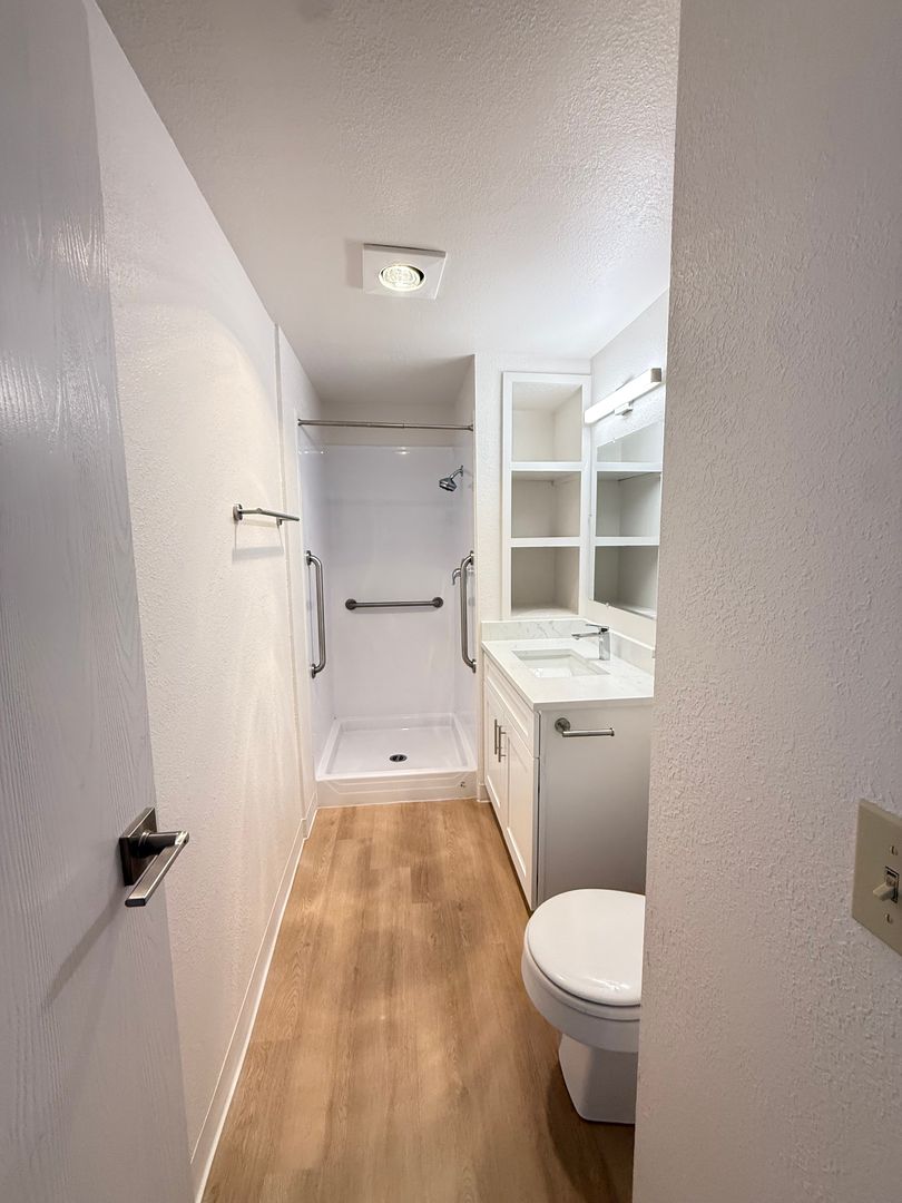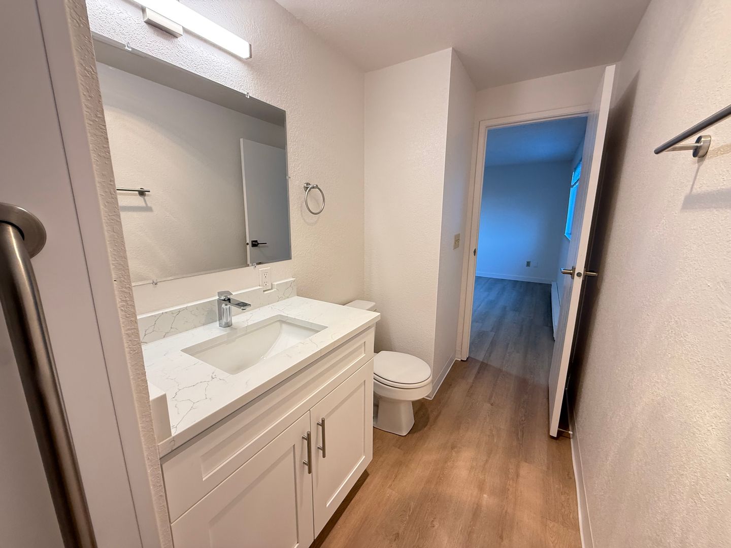 Picture this: stepping onto brand-new vinyl hardwood floors that look sharp and wipe clean in seconds. A modern kitchen with gleaming new quartz countertops, sleek cabinetry, neutral warm backsplash, and your choice of white or stainless steel appliances. Two full bathrooms mean no more "hurry up in there!" And right off your living space? A private balcony or patio with extra storage—perfect for bikes, boards, or that growing plant collection—plus stunning views of Puget Sound that make every coffee break feel like a mini getaway.