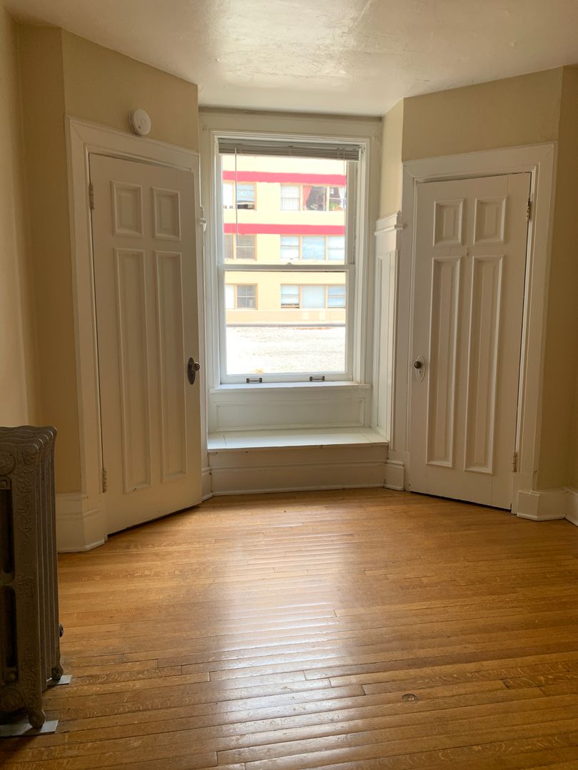 Gorgeous 1bdrm with large windows, lots of light, hardwood floors, antique molding and unique 1920's fixtures in located in historic lower Queen Anne makes this apartment an extra special place to live. Kitchen with black/white square tiling, vintage cabinets, boiler heat, plentiful counter space and gas-fire stove. Charming fountain, U-shaped building with zigzag hallways, on-site laundry with brand new facilities, easy Bluetooth laundry access, secure key-card entry, and local pickup laundry service for dry-cleaning and regular press/wash.