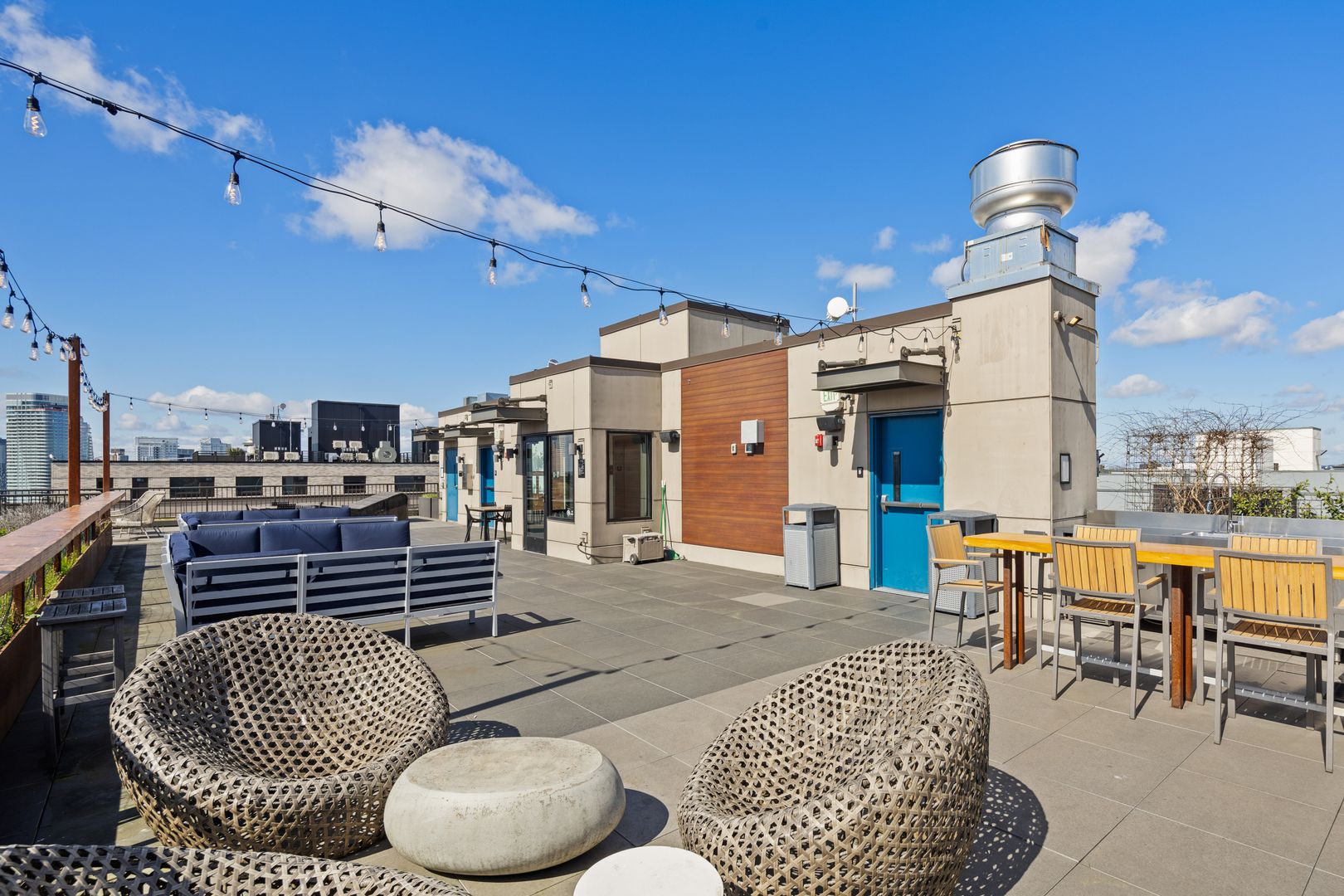 Residents can unwind on the rooftop deck, soaking in stunning city views, or host summer gatherings in the rooftop BBQ area. The controlled-access building ensures security and peace of mind. A shared workspace is ideal for those working from home, and bike storage is available for cycling enthusiasts.