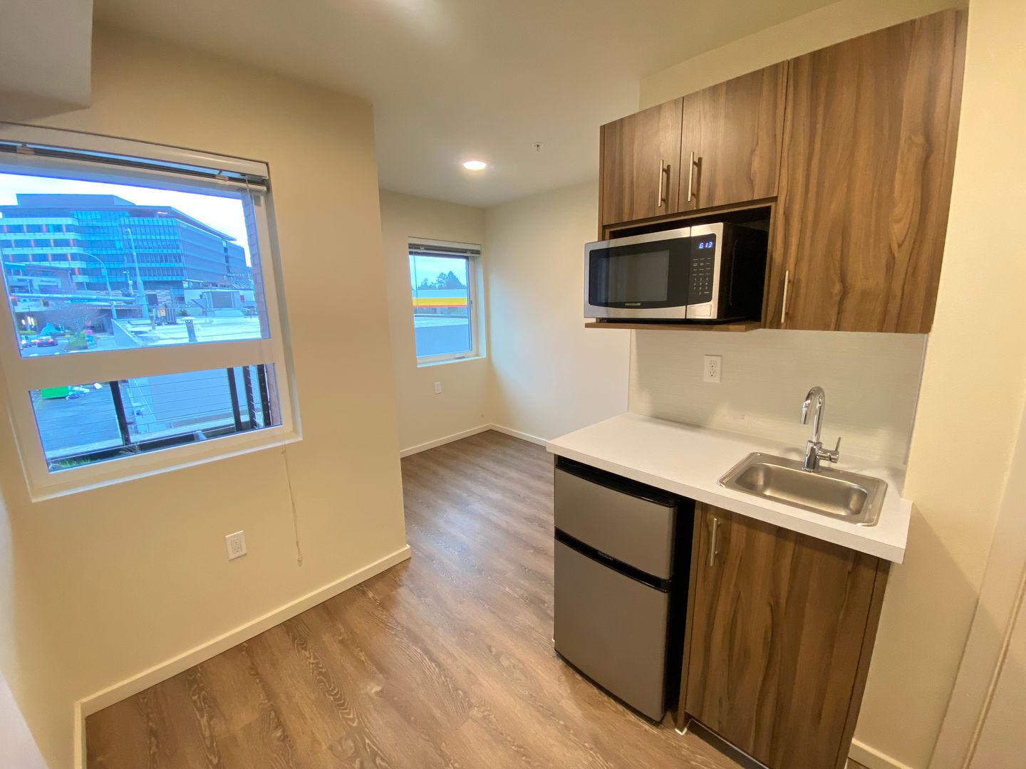 Plaza Apartments offers modern, comfortable living with a sleek, efficient design—all at an unbeatable price. Become part of our vibrant Eastside community, where style meets sustainability. Our building is LEED Platinum and Built Green 5 certified, so you can feel good about where you live.