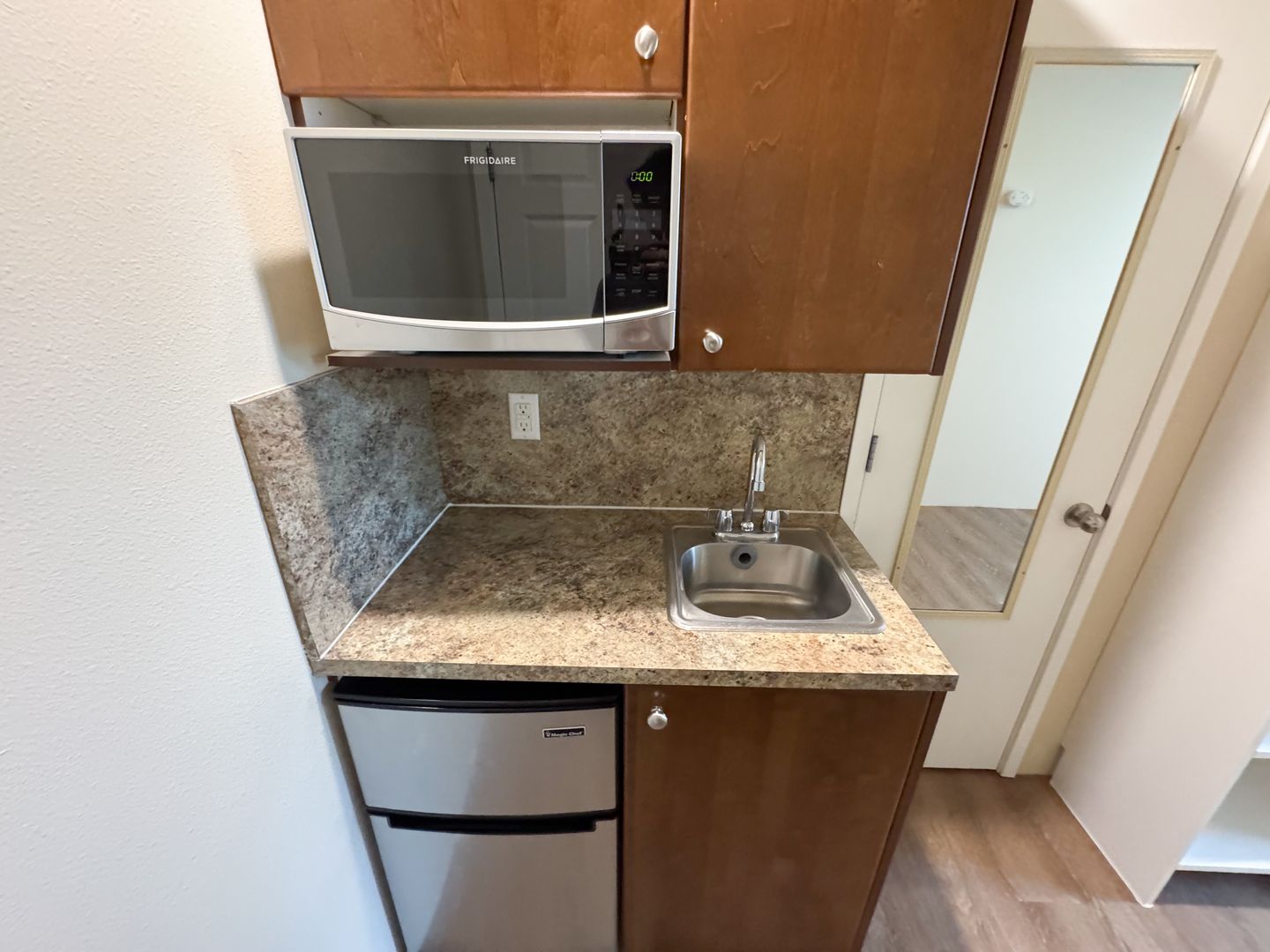Unit 556 is set with a private bathroom, convenient kitchenette, a spacious living area, and is located on the top floor!