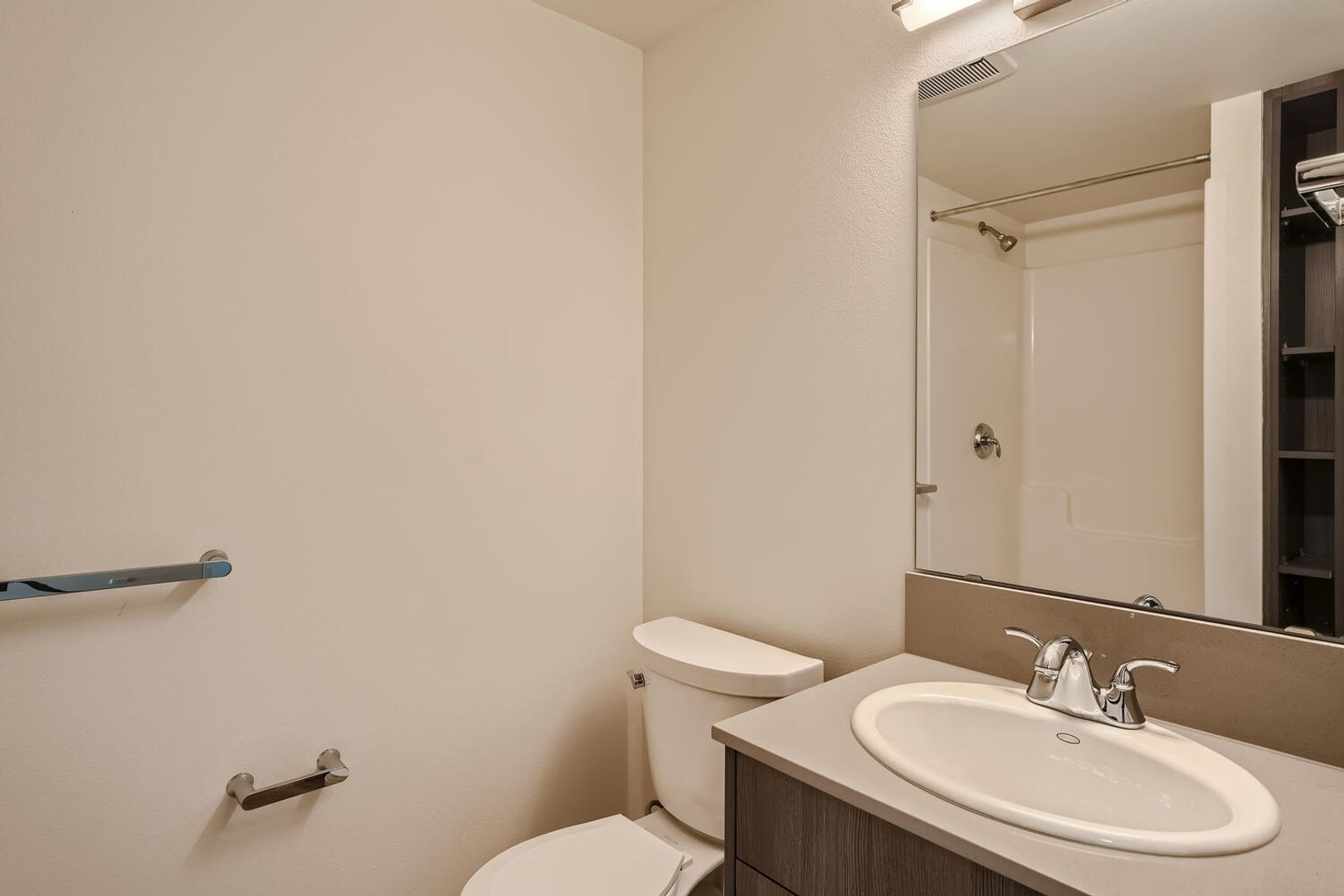 Enjoy modern living with floor-to-ceiling windows, and a spacious walk-in shower.