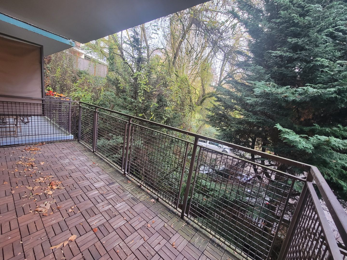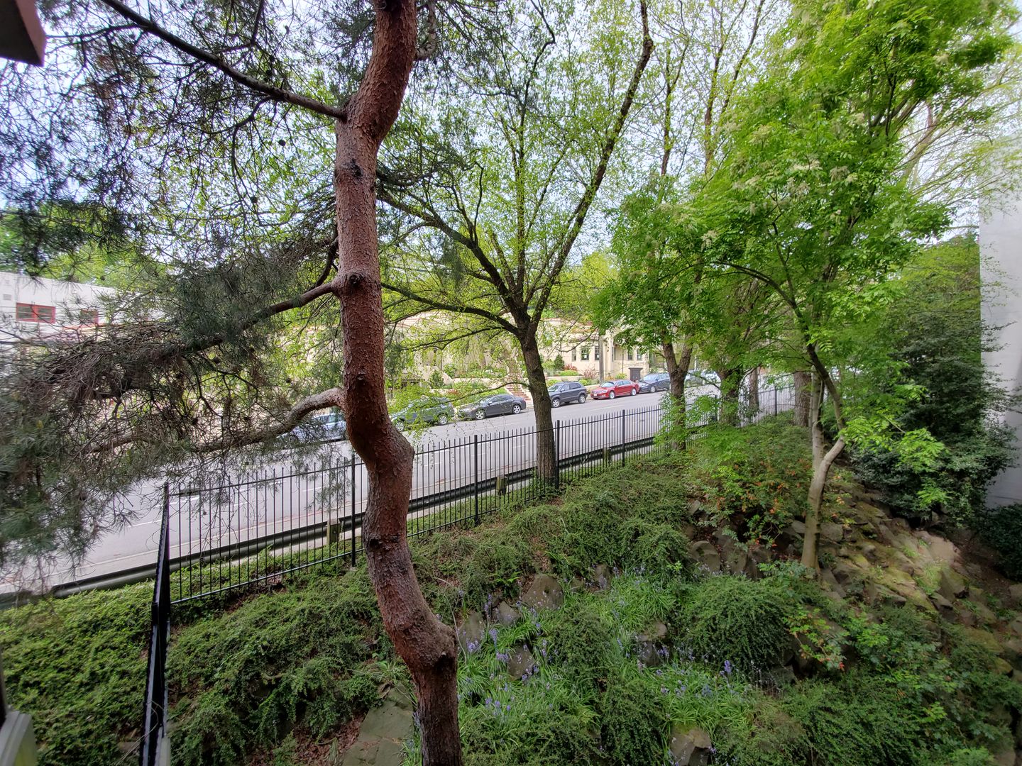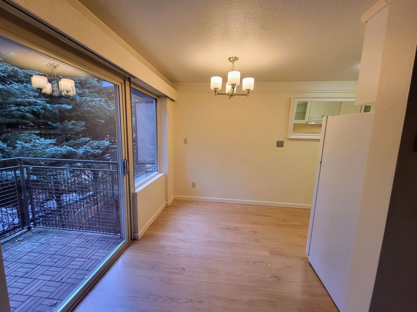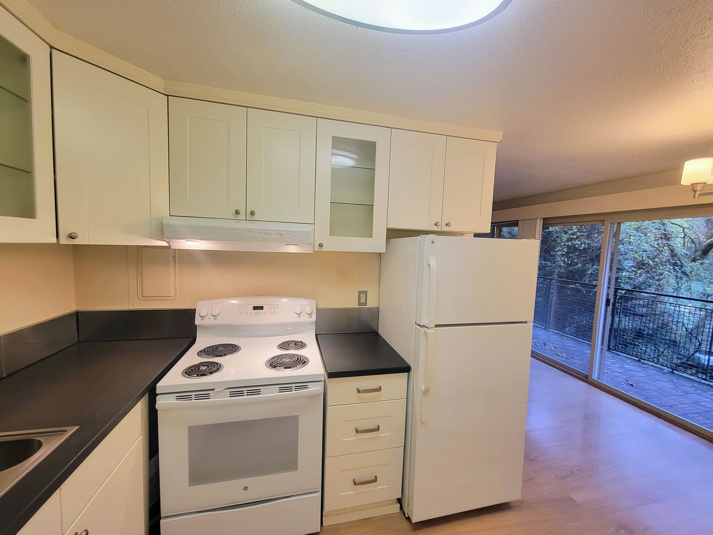 Spacious 1bed/1bath (approx 750sf) apartment available now. Big windows in living space and bedrooms + a spacious deck, overlooking greenbelt - nothing but trees out of every window! Lots of in-unit storage (multiple large closets), laminate flooring throughout living areas and carpet in the bedroom. Clean and bright laundry room on-site, right outside the elevator for easy access.