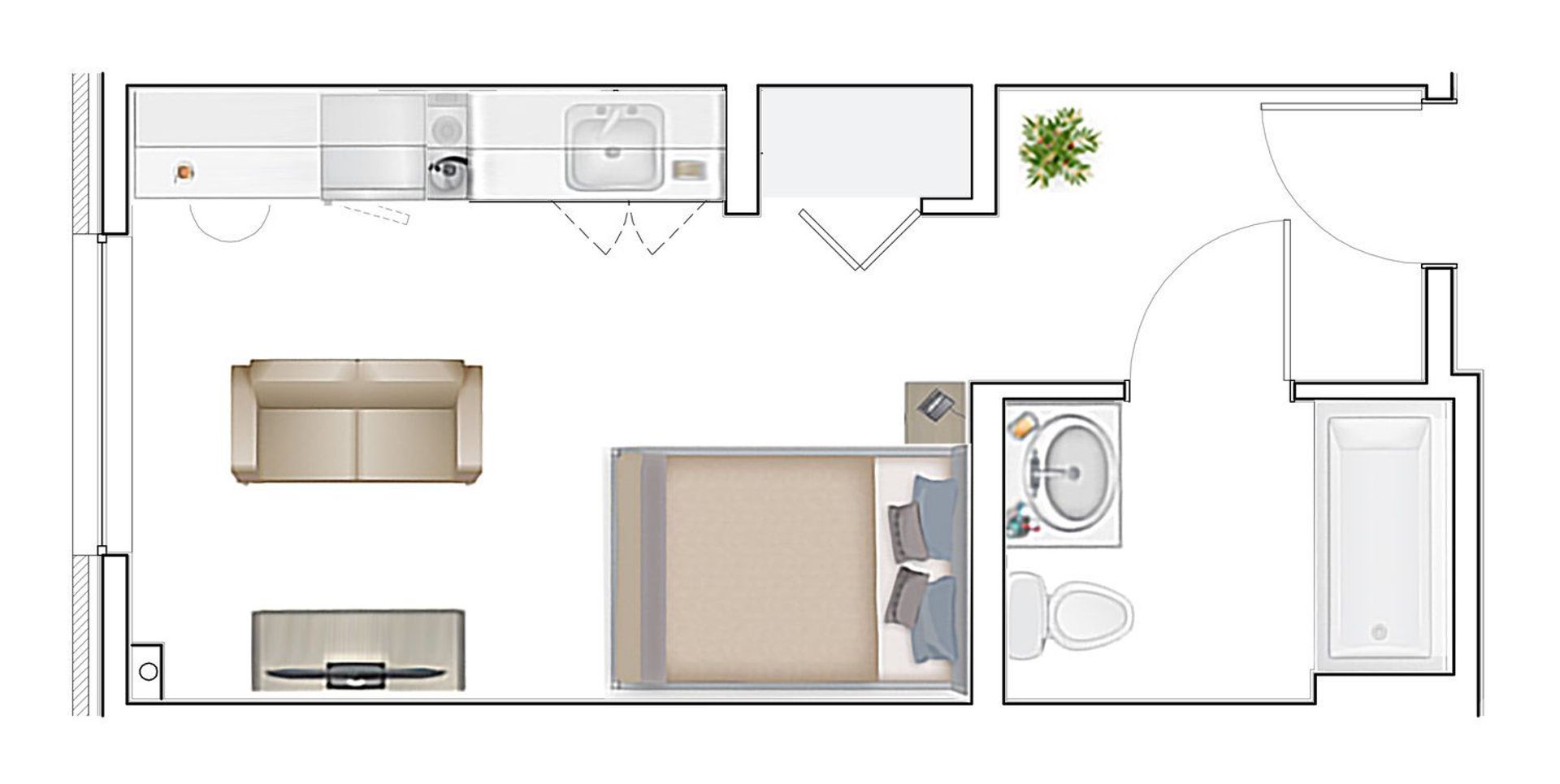 • Efficient 305 sq. ft. layout — easy to furnish and maintain