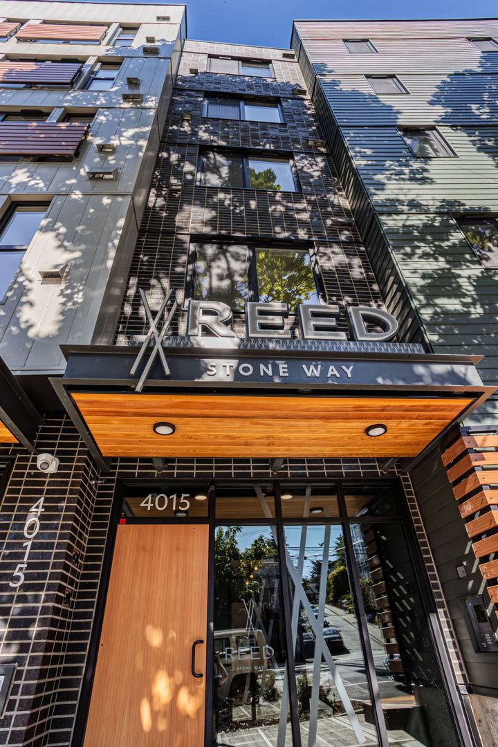 Reed offers thoughtfully designed studios in the heart of Fremont with sleek finishes, full kitchens, in-unit laundry, and access to rooftop and indoor lounge with views of Lake Union and downtown.