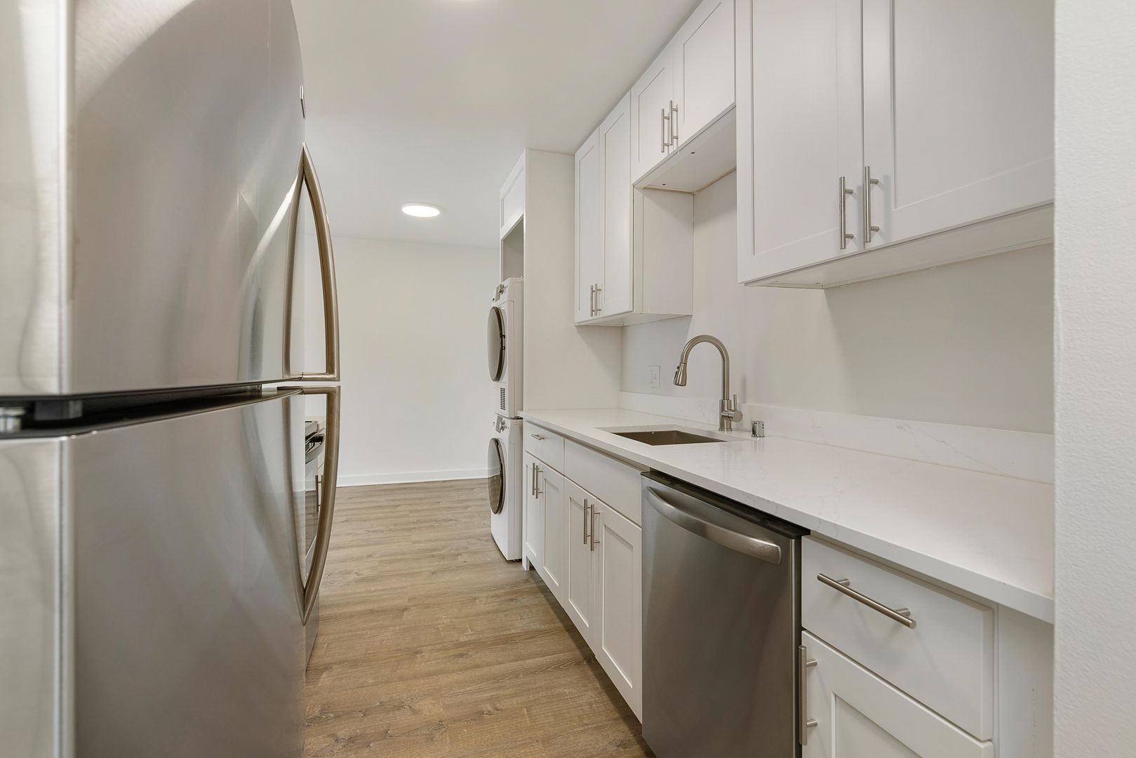 There’s a second bedroom that can be anything: guest space, gear storage, work-from-home HQ, or all of the above. Two full bathrooms = no waiting for the shower. Hardwood flooring throughout keeps it sharp and easy to clean. The finishes are modern but grounded: quartz, sleek cabinetry, updated lighting, and enough square footage to feel like you actually live here—not just sleep here.