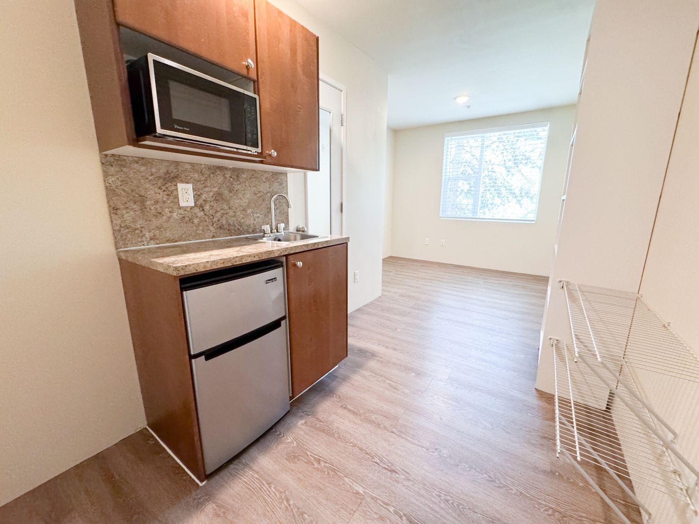 Vision 5 is conveniently located in the heart of downtown Redmond. Within walking distance of everything you need, you are just minutes from the Redmond Transit Center, Redmond Library, grocery stores, restaurants and more! Lay out and get some sun in our open courtyard or cook whatever you need in one of our eight common kitchen areas or on the outdoor BBQ. With unlimited use of laundry machines throughout the property, never go without clean clothes in your wardrobe. You can't beat this price in downtown Redmond!
