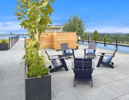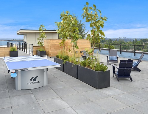 Building perks include a rooftop deck with stunning views of Mt. Rainier, Lake Washington & the Cascades, plus fire pit, BBQ grill, and ping pong!