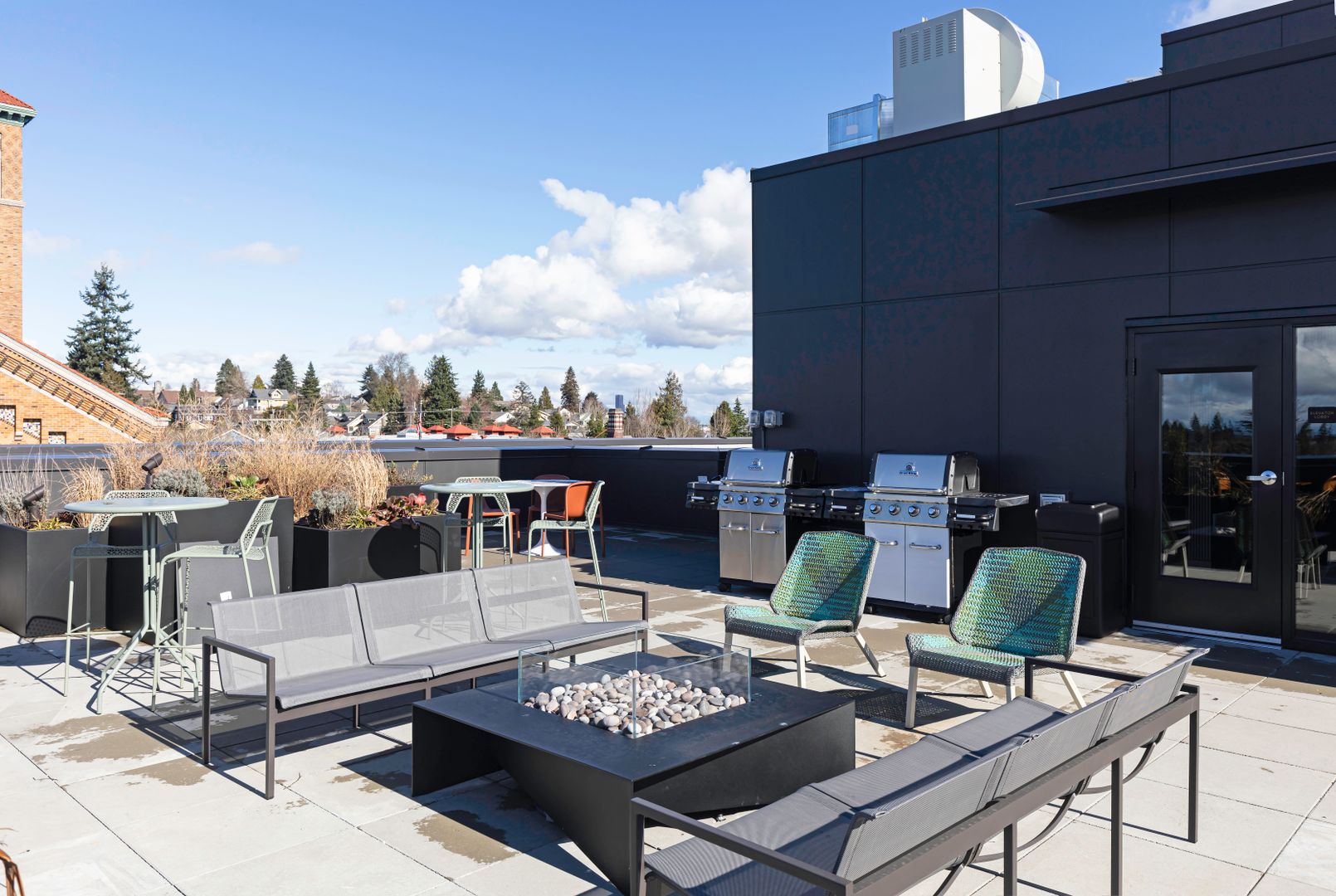 Scenic Rooftop Retreat: Take in breathtaking views of the city and surrounding landscapes from our rooftop lounge and fire pit area. It's the perfect place to unwind or entertain guests against a stunning backdrop.