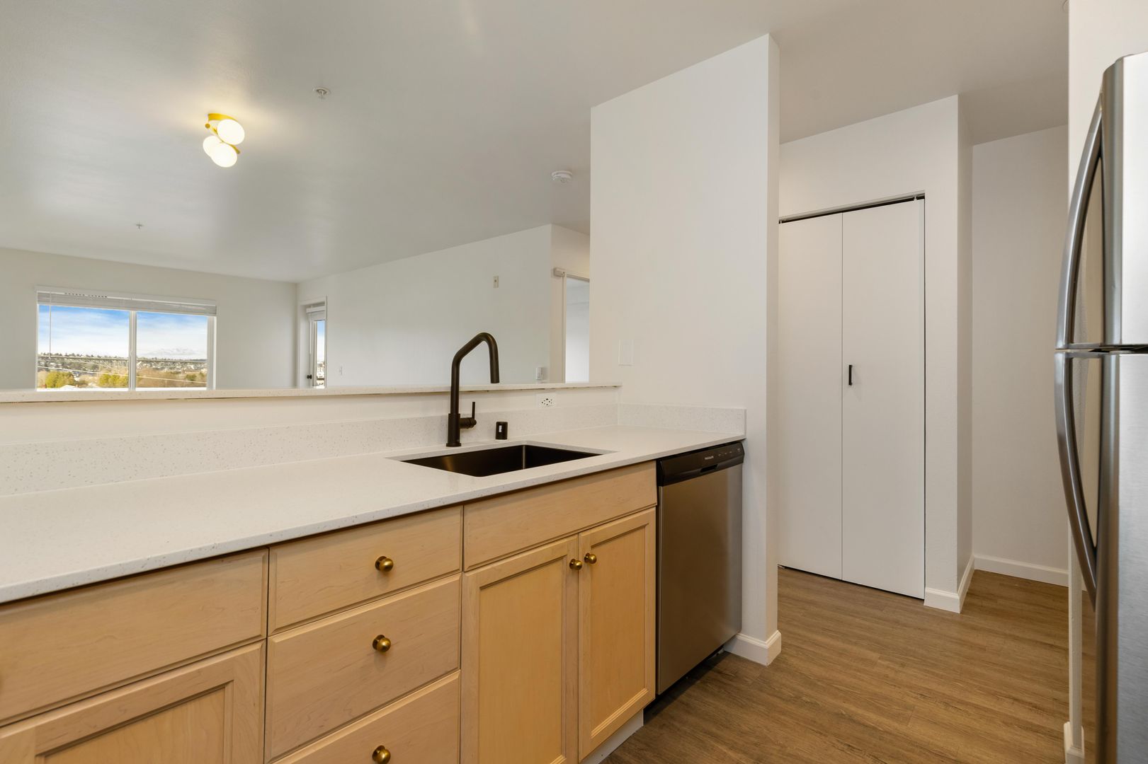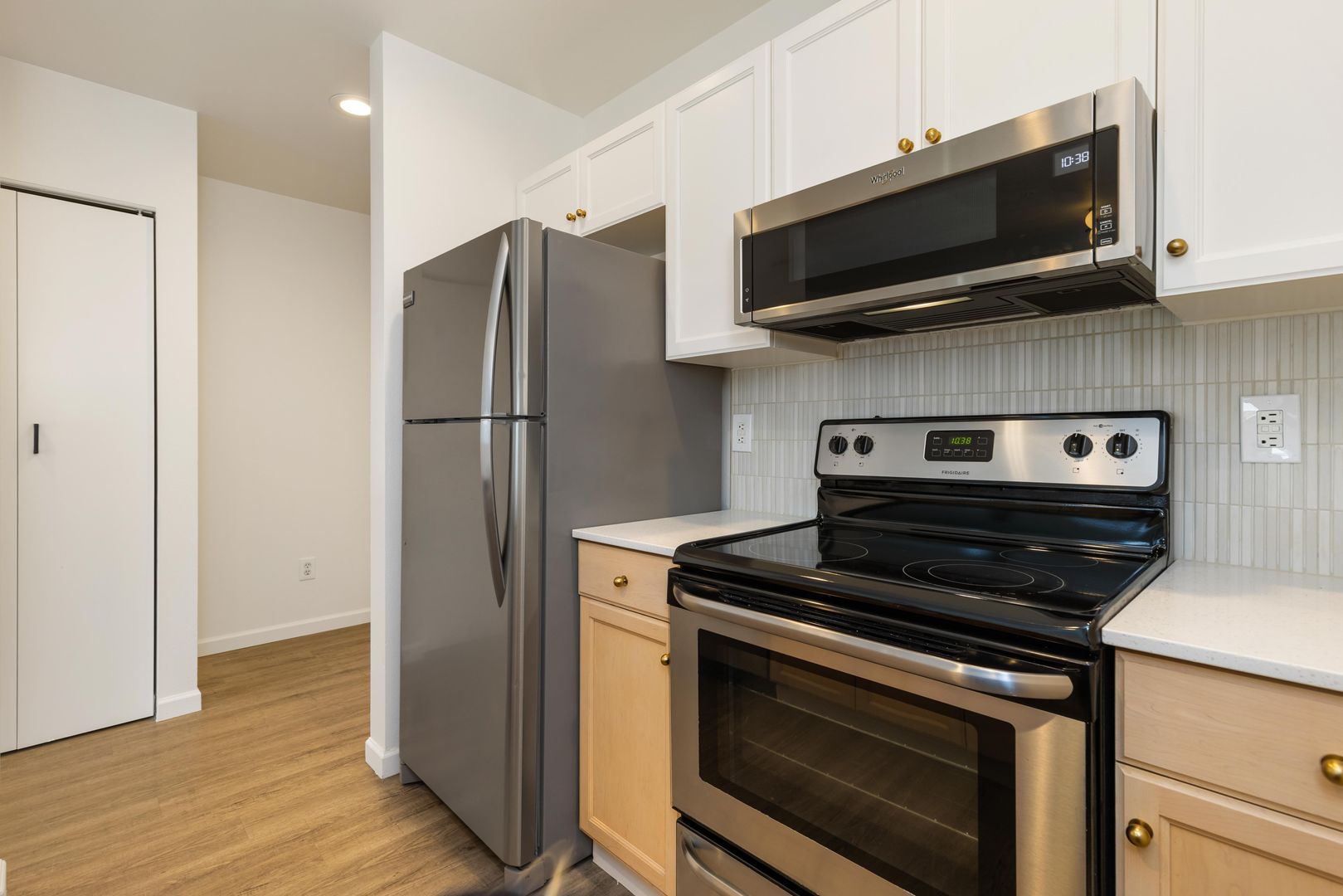 Inside, our thoughtfully designed one- and two-bedroom apartment homes are built to complement your lifestyle. Each residence features modern finishes including durable vinyl wood-plank flooring, in-home washer and dryers, and fully equipped kitchens. We’re also a pet-friendly community and look forward to welcoming your furry companions home.
