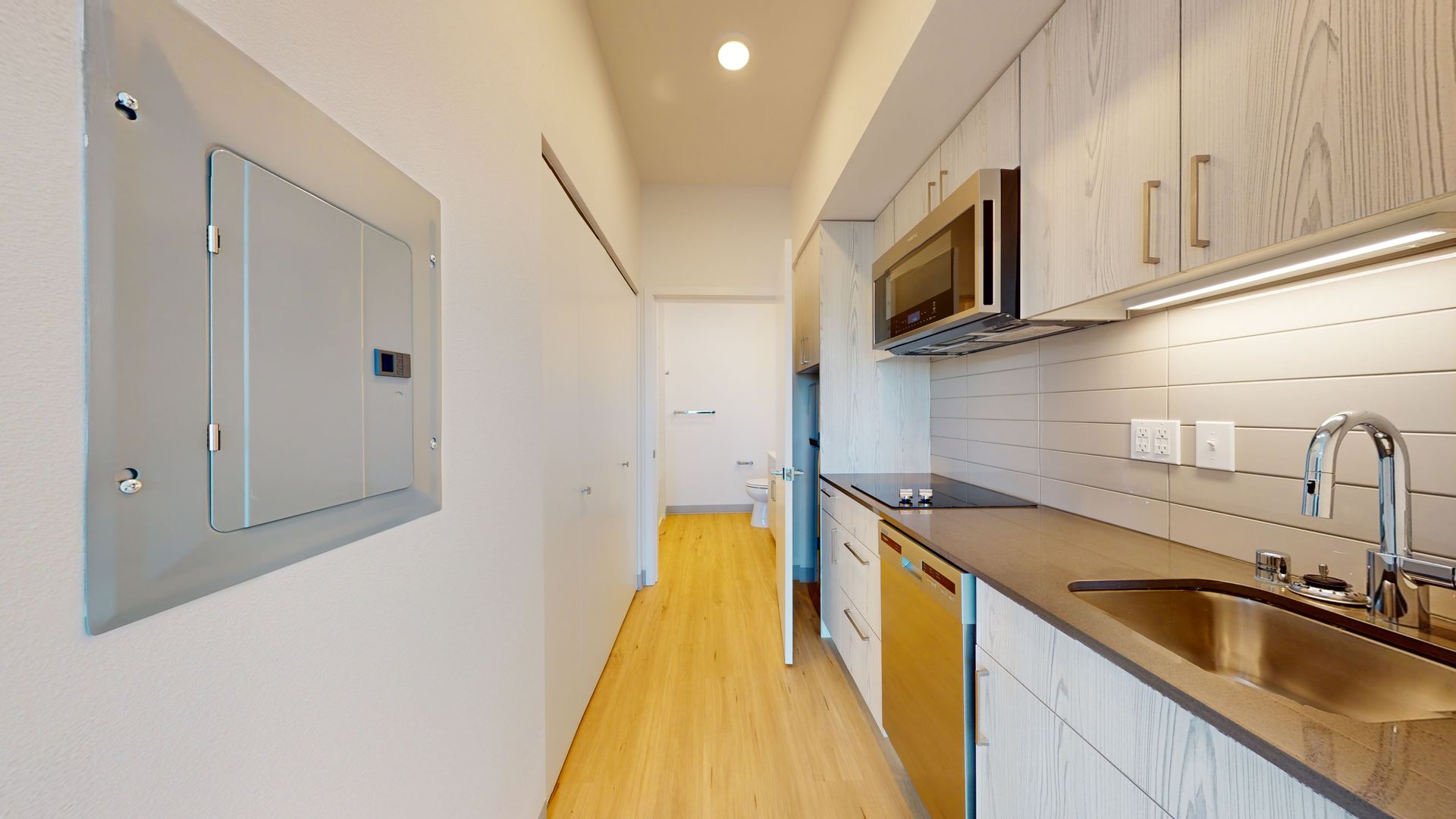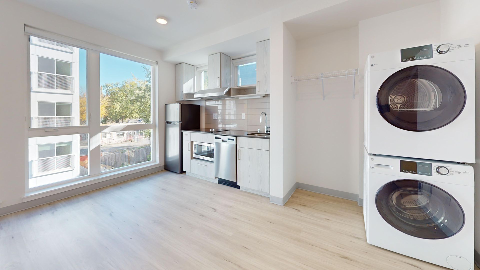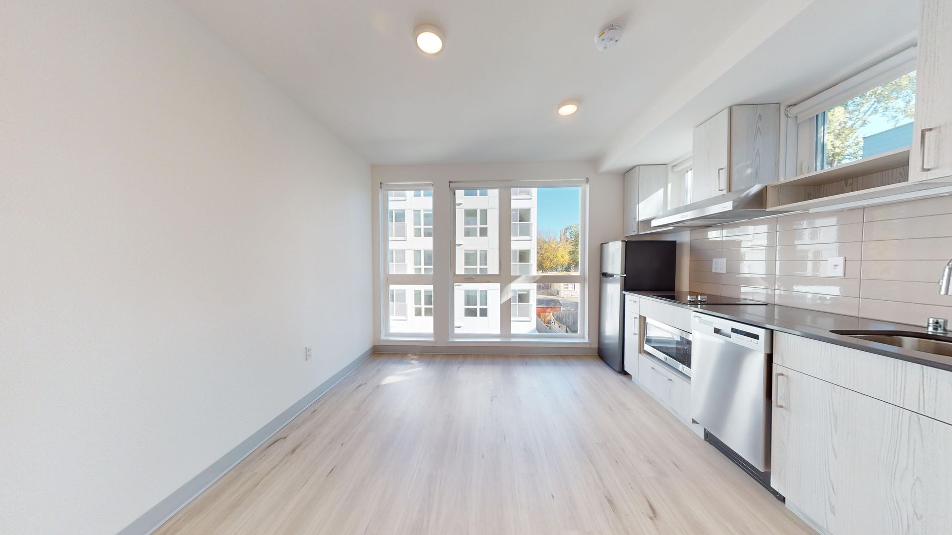 Each apartment offers a spacious layout with an open floor plan, allowing for easy customization and flexibility. Homes are designed with full kitchens equipped with modern, full-size appliances, in-unit washer and dryer, high-speed internet, and floor-to-ceiling windows that flood the space with natural light. Luxury vinyl wood-grain flooring adds a warm, elegant touch throughout.