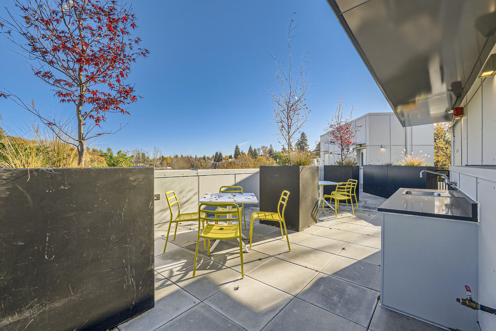 Residents enjoy an exceptional collection of amenity spaces, crafted to elevate daily living. Take in breathtaking city views from our rooftop lounge, unwind in comfortable indoor shared spaces, or host gatherings in the outdoor kitchen—the perfect spot to enjoy the beautiful Seattle weather. For cyclists, our secure bike storage offers peace of mind and convenience.