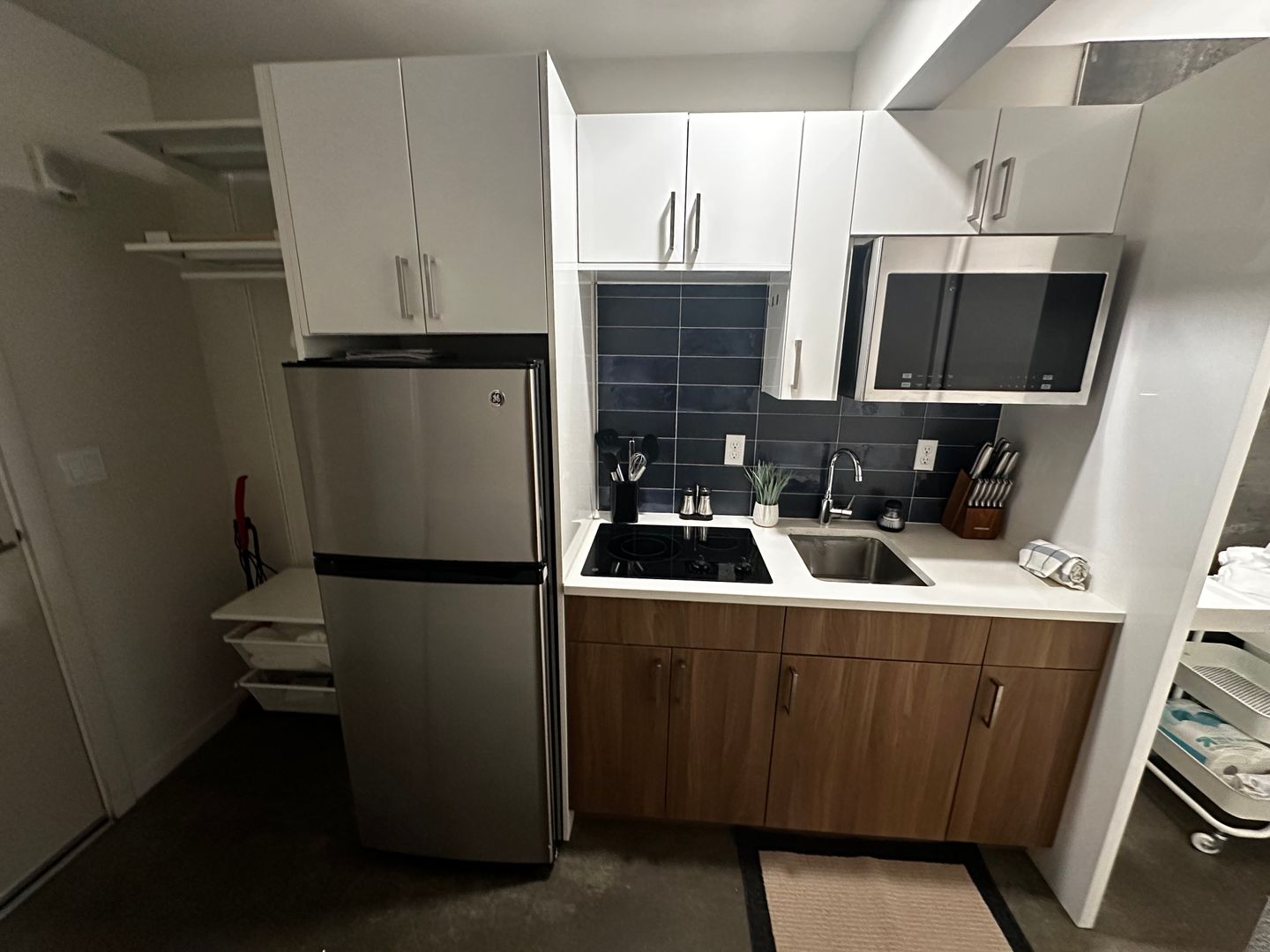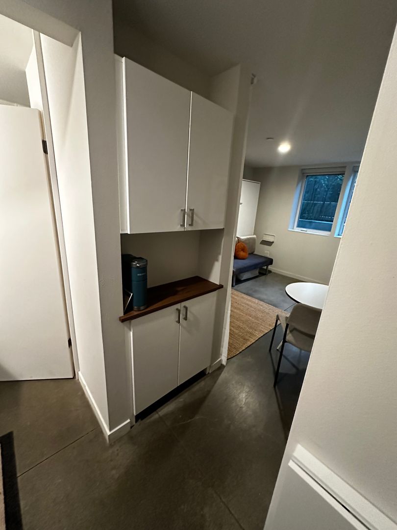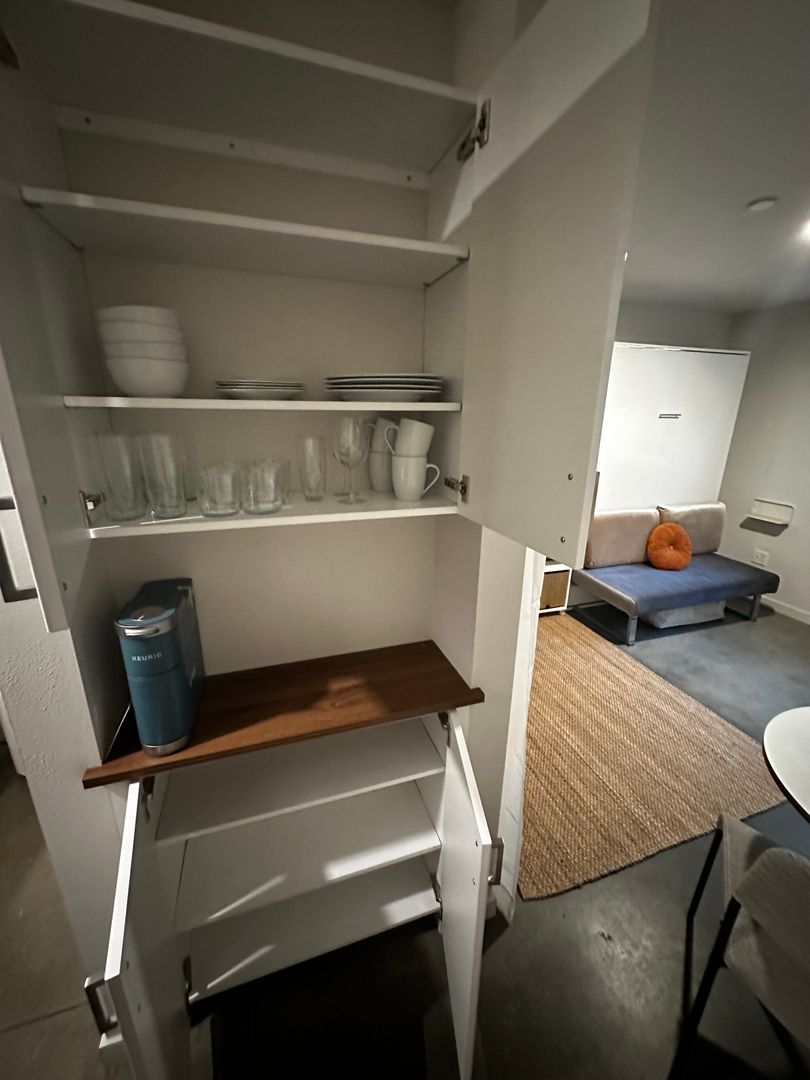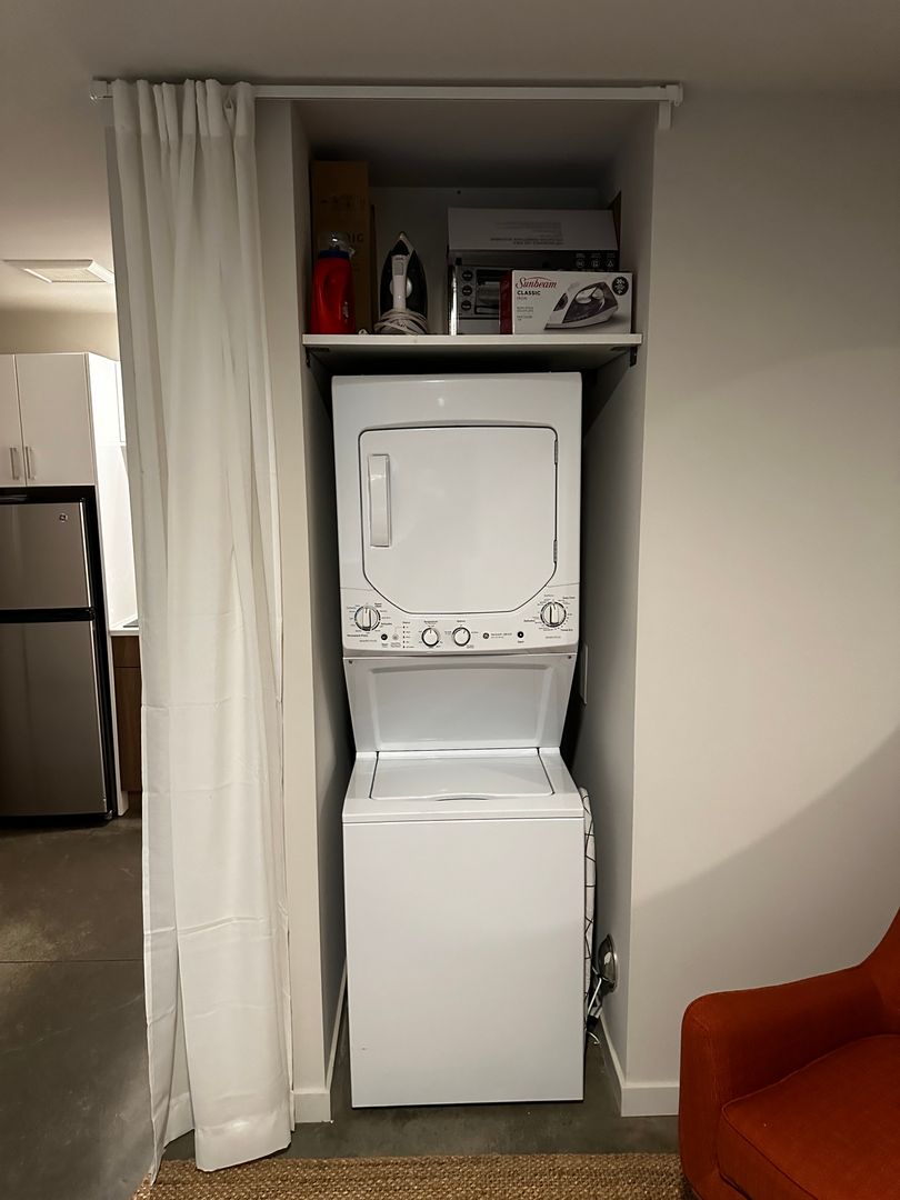This cozy, fully furnished studio home includes complete bedding, fully equipped kitchenette, and bathroom essentials. Enjoy modern, in-unit laundry and stainless steel kitchen appliances. Internet, utilities, and furnishing fees are included in the rent rate.