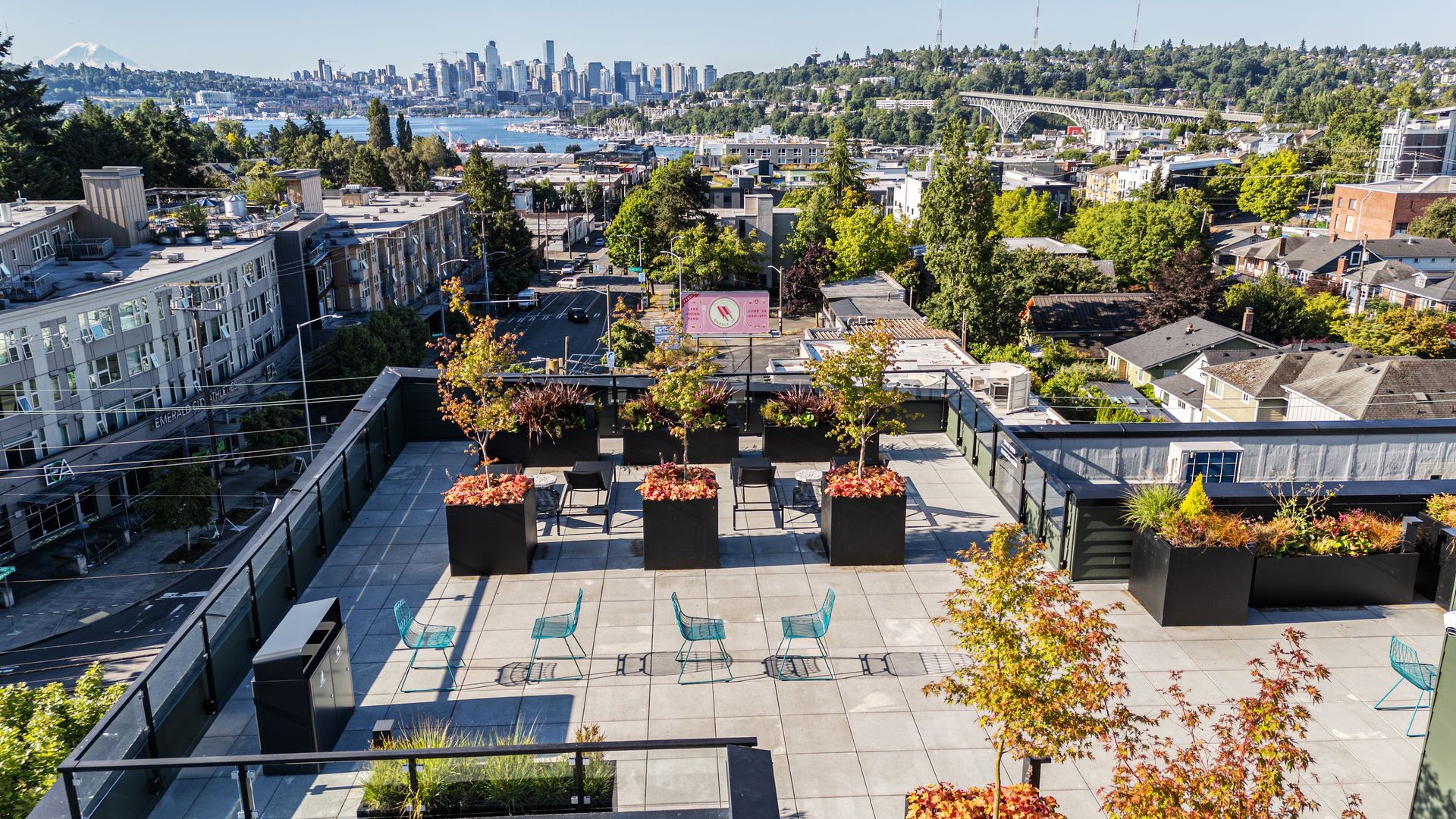 ● Indoor lounge w/ bar, TV, and views of Lake Union & downtown