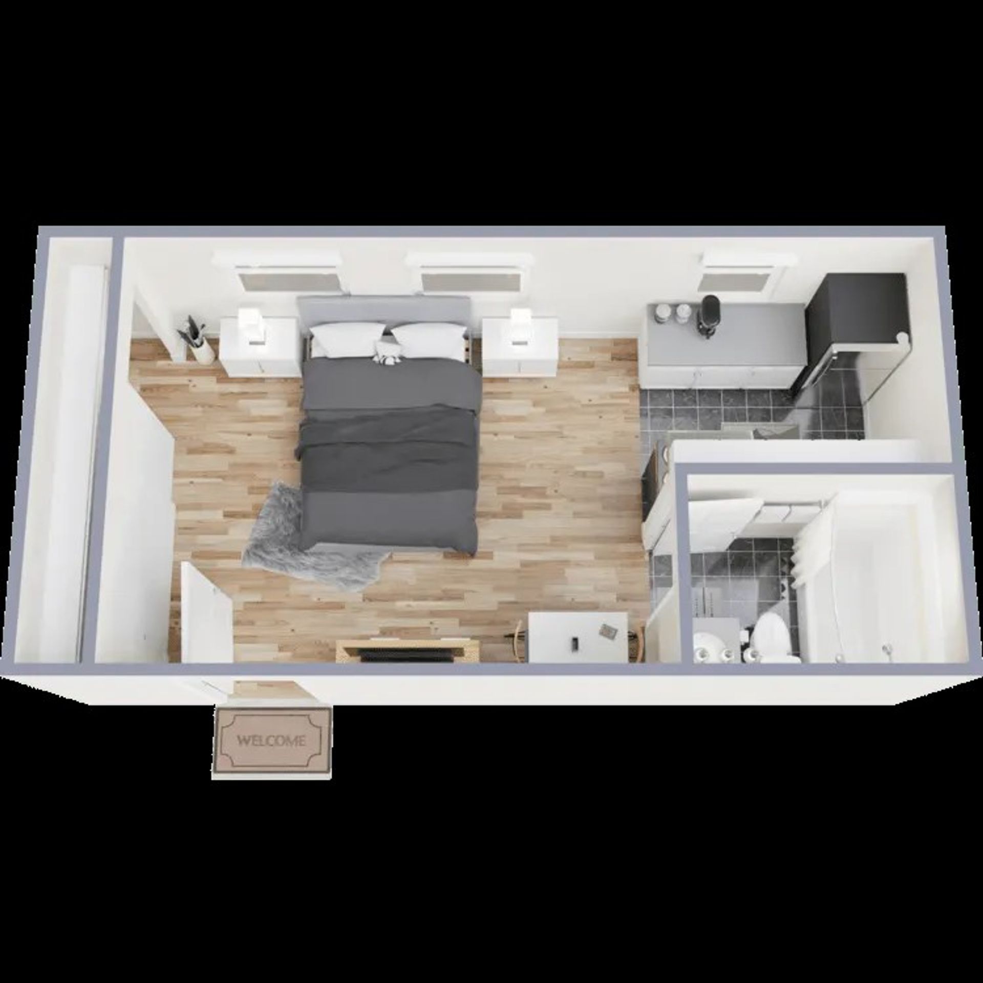 Choose from three thoughtfully designed floor plans—studio or one-bedroom apartments. With spacious 9-foot ceilings, modern appliances, and stylish finishes, each home is designed for your comfort!