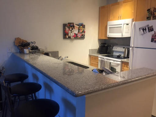 - large kitchen with built-in eating bar,
