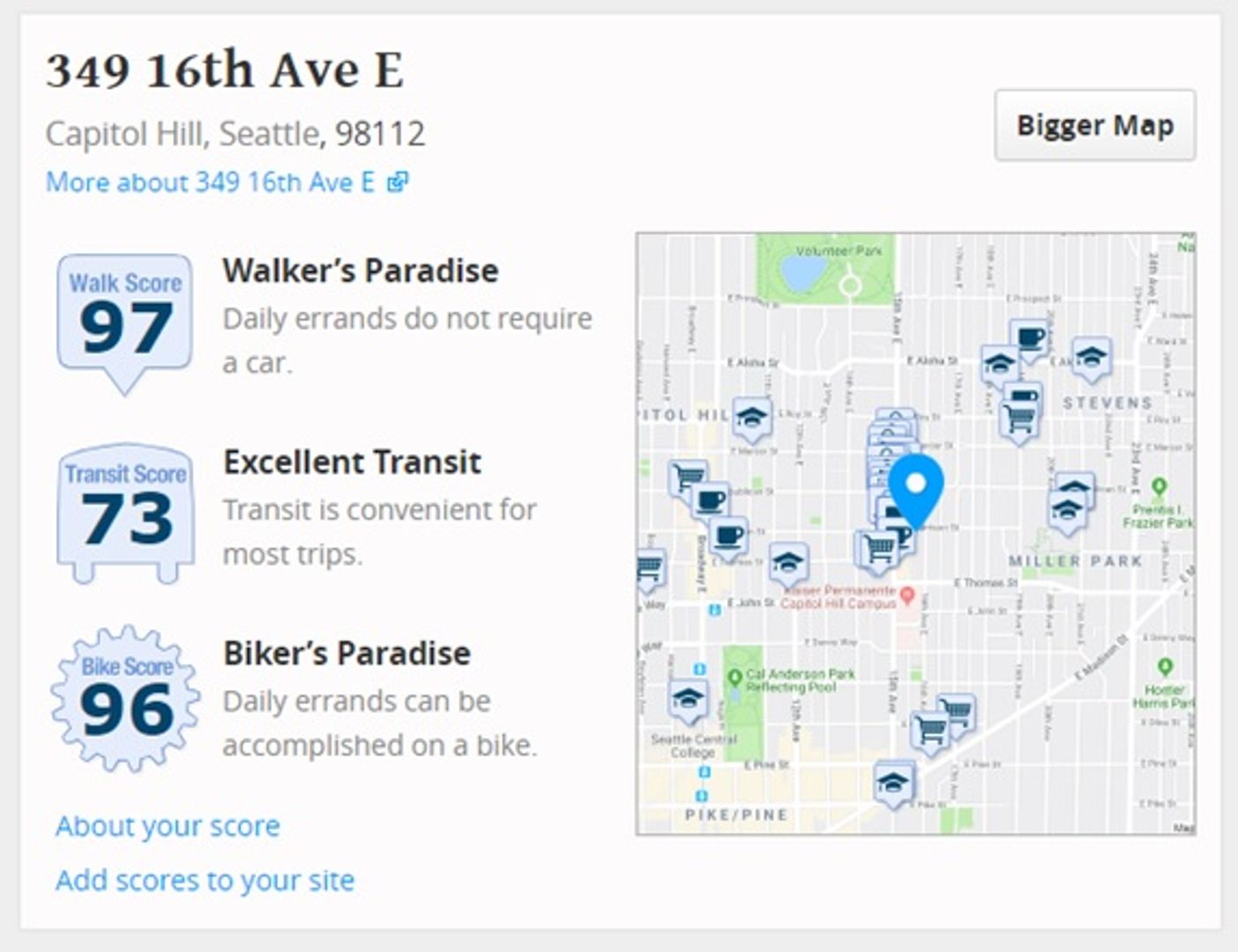 Bus lines 43, 8 and 10 a block away (15th and Thomas) and the Seattle Light Rail is in walking distance.