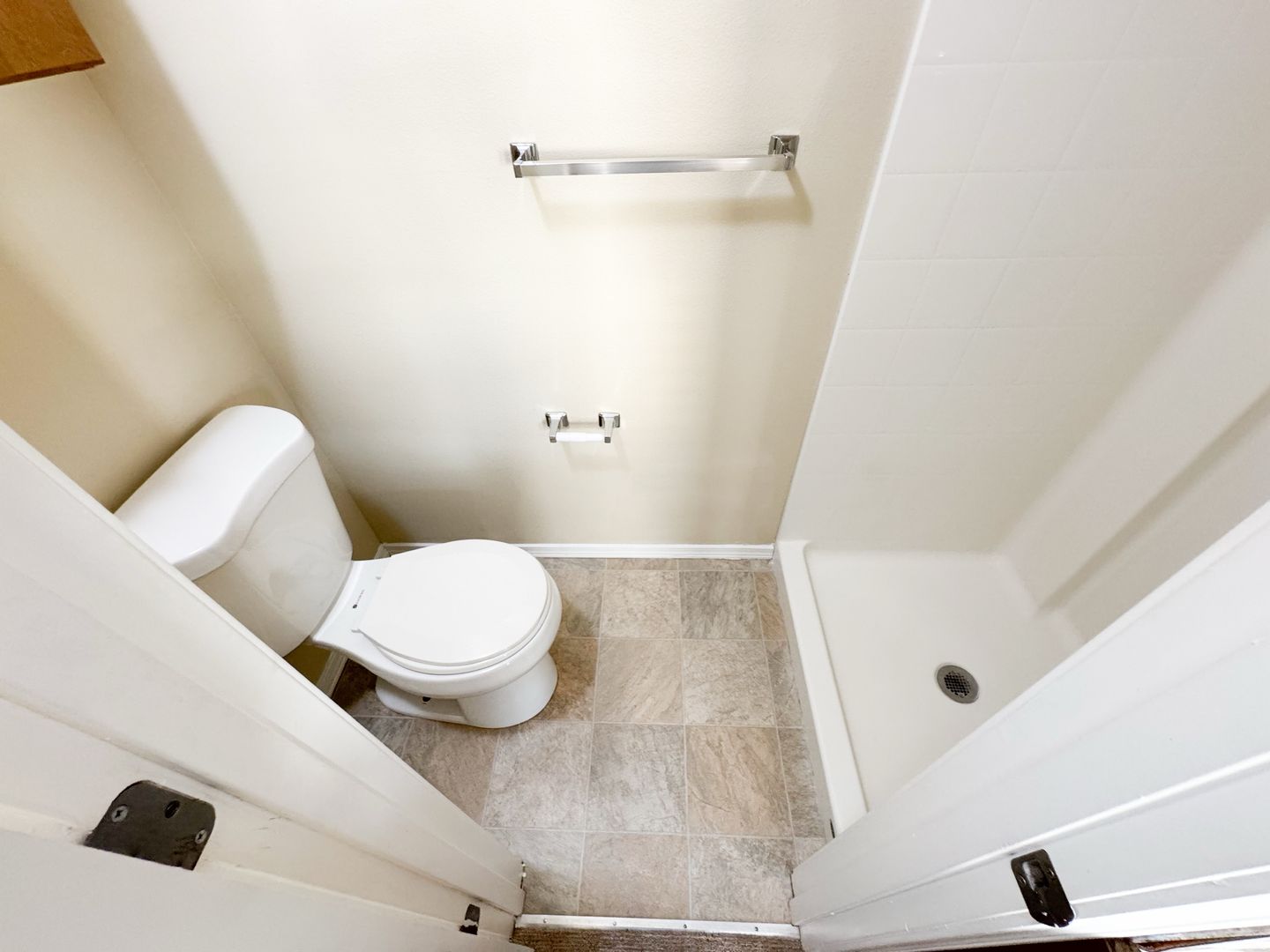Apartment 7E is a loft on the top floor of the building, with separated areas for your sleeping area as well as your living area. With vaulted ceilings and massive bay windows, you feel the open space and freedom to design your apartment however you would like! This is one of our largest eco-flat floor plans. Just downstairs you'll find the common kitchen for this building.