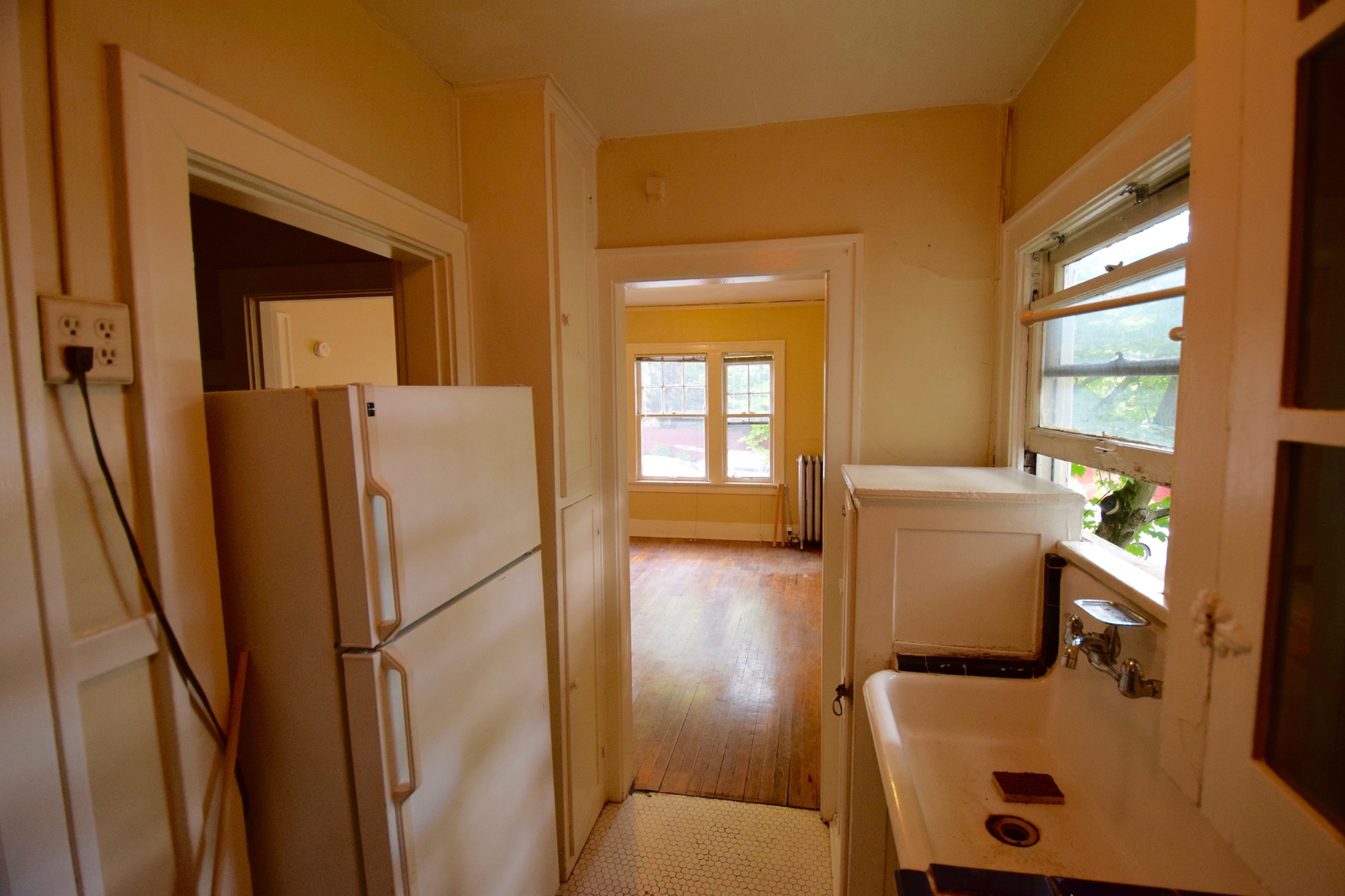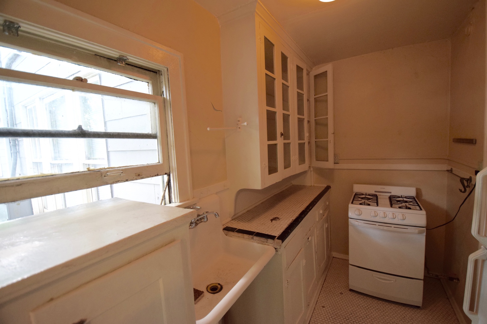 Apt 19 is a top-floor, corner unit with lots of light and hardwood floors. This is a full studio that offers a charming kitchen with tile floors and countertops, an oversize sink, and a gas range, plus a full private bath with tub/shower and built-in storage.