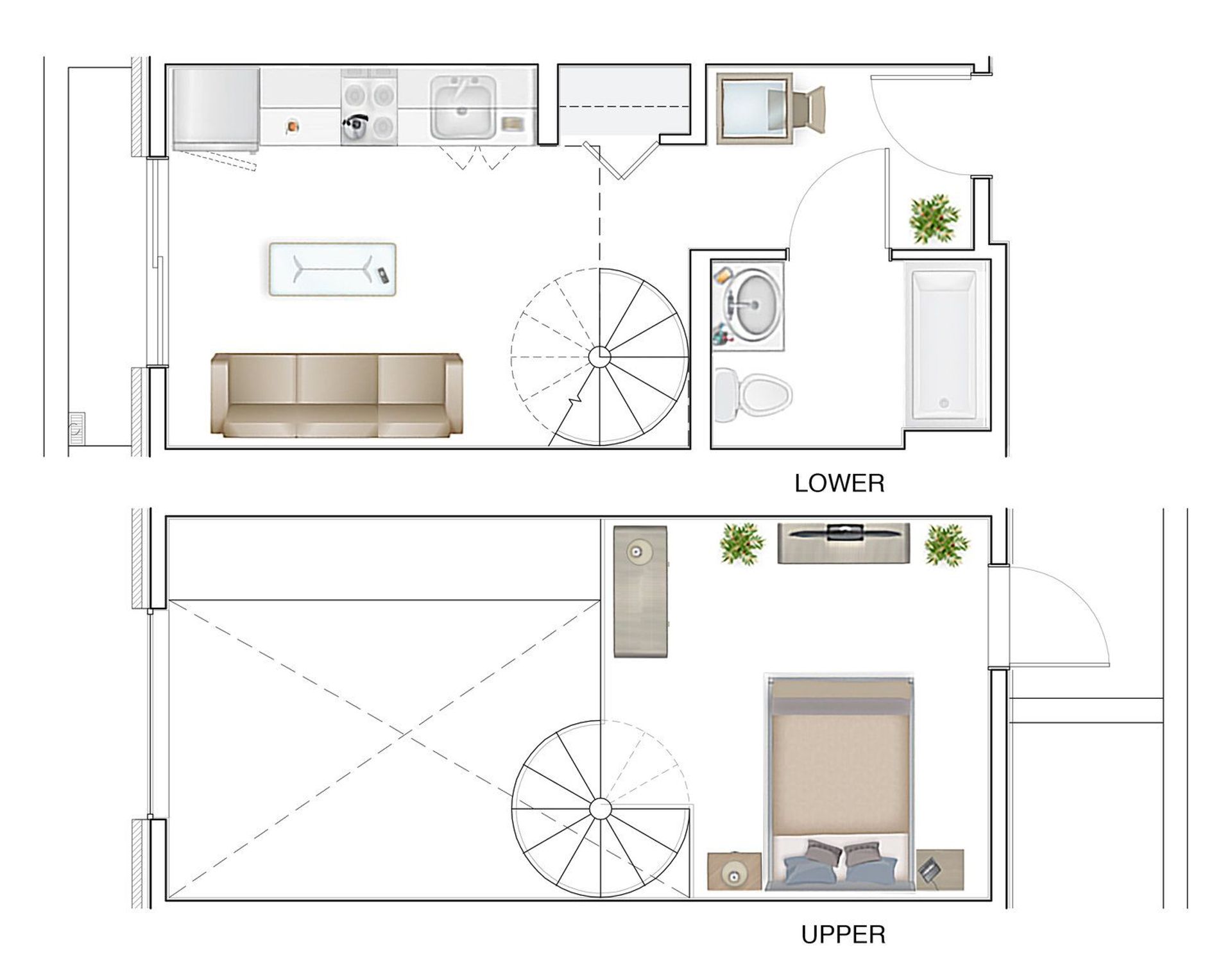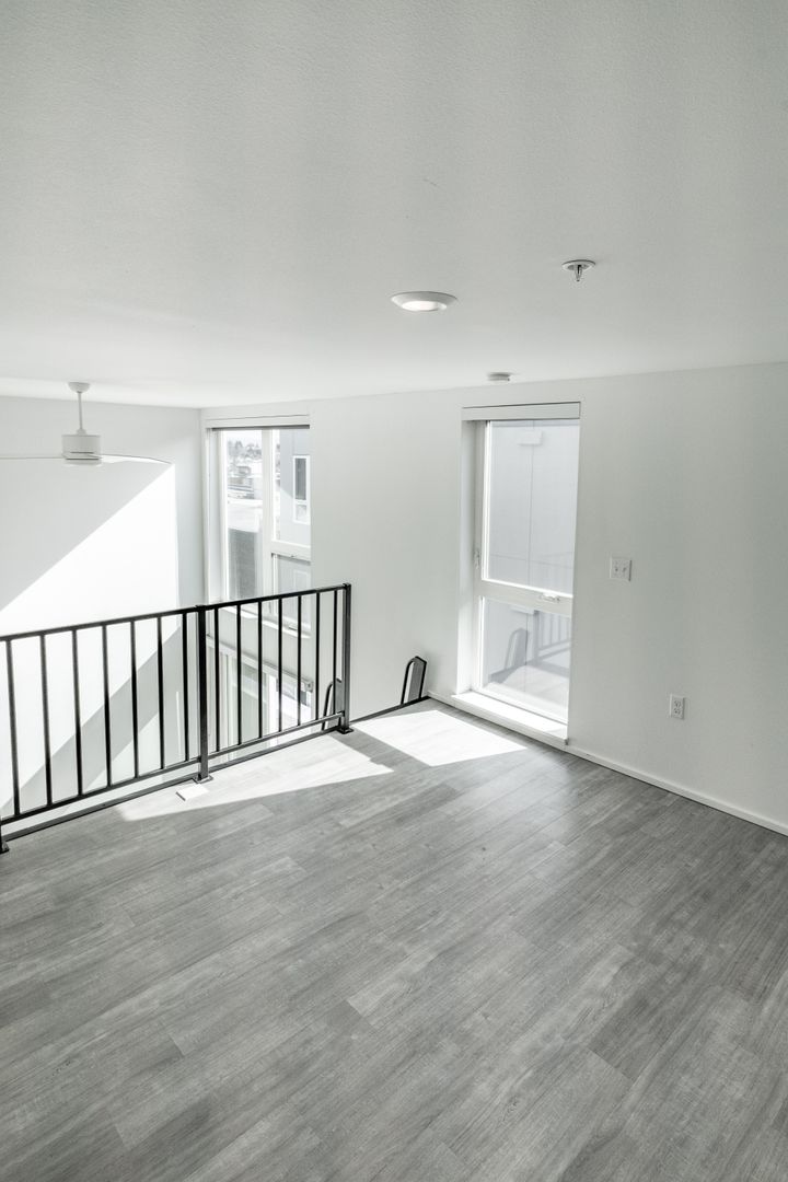 703 is a top floor loft-style unit with a spiral staircase & two unit balconies, in the heart of Capitol Hill!